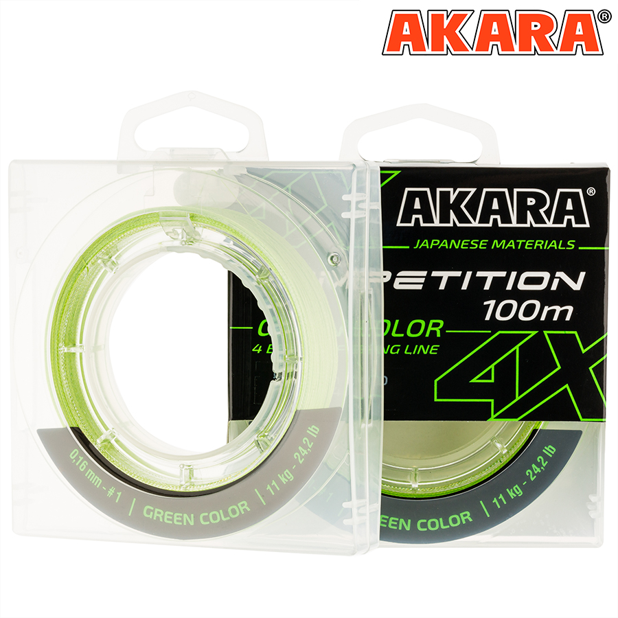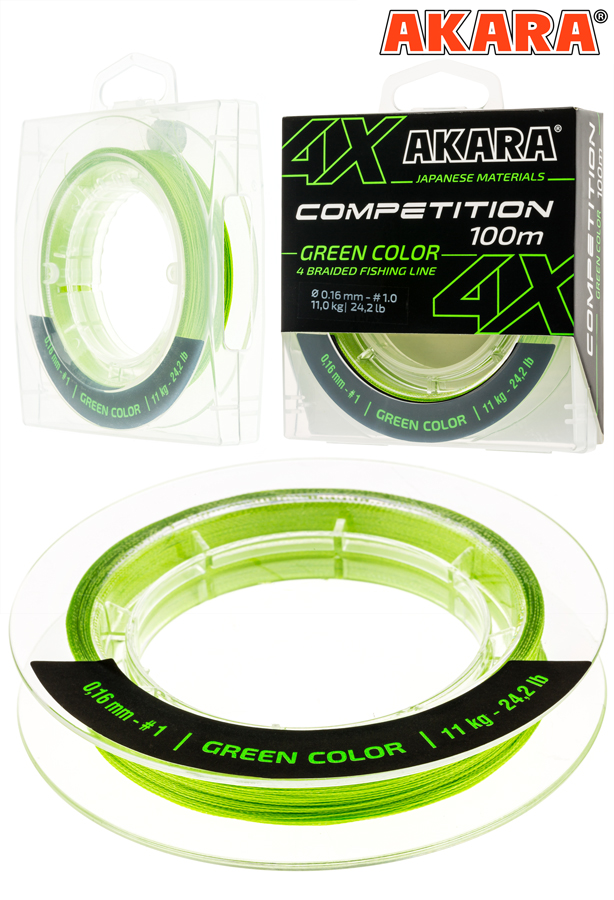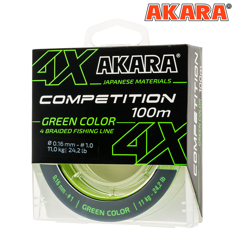 Шнур Akara Competition Green создан для спортивной ловли. Шнуры Akara Competition обладают гладкой поверхностью и круглым сечением, благодаря чему удается увеличить дальность заброса. Плетение состоит из четырех волокон. Применяются японские материалы, обладающие повышенной прочностью. Использовать шнур Competition можно в том числе и в сложных условиях ловли, где есть риск зацепа. Тестовый показатель в зависимости от диаметра может составлять от 9,5 до 13 кг. Зеленая окраска делает шнур незаметным на фоне дна и водной растительности. Отличный шнур в достаточно бюджетном ценовом сегменте.