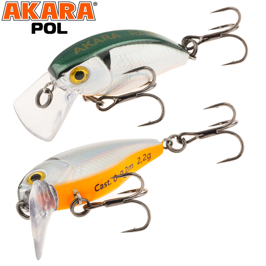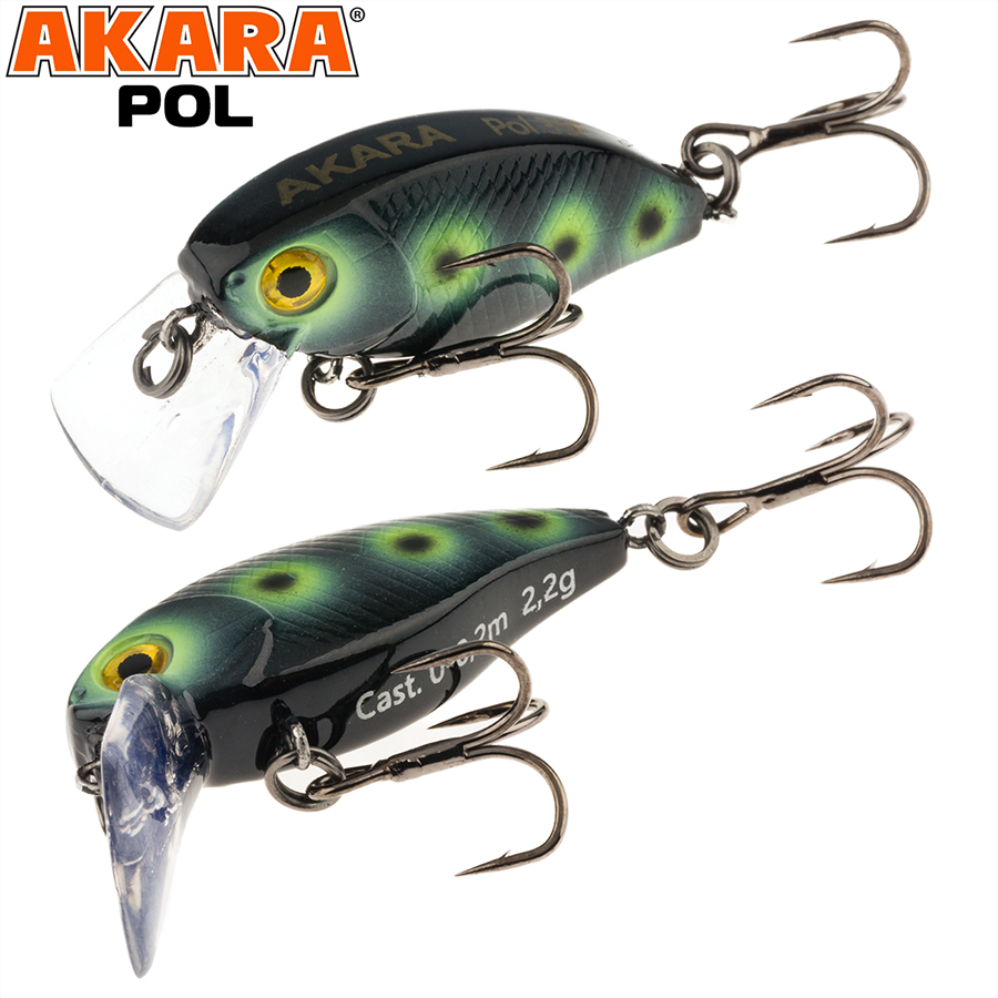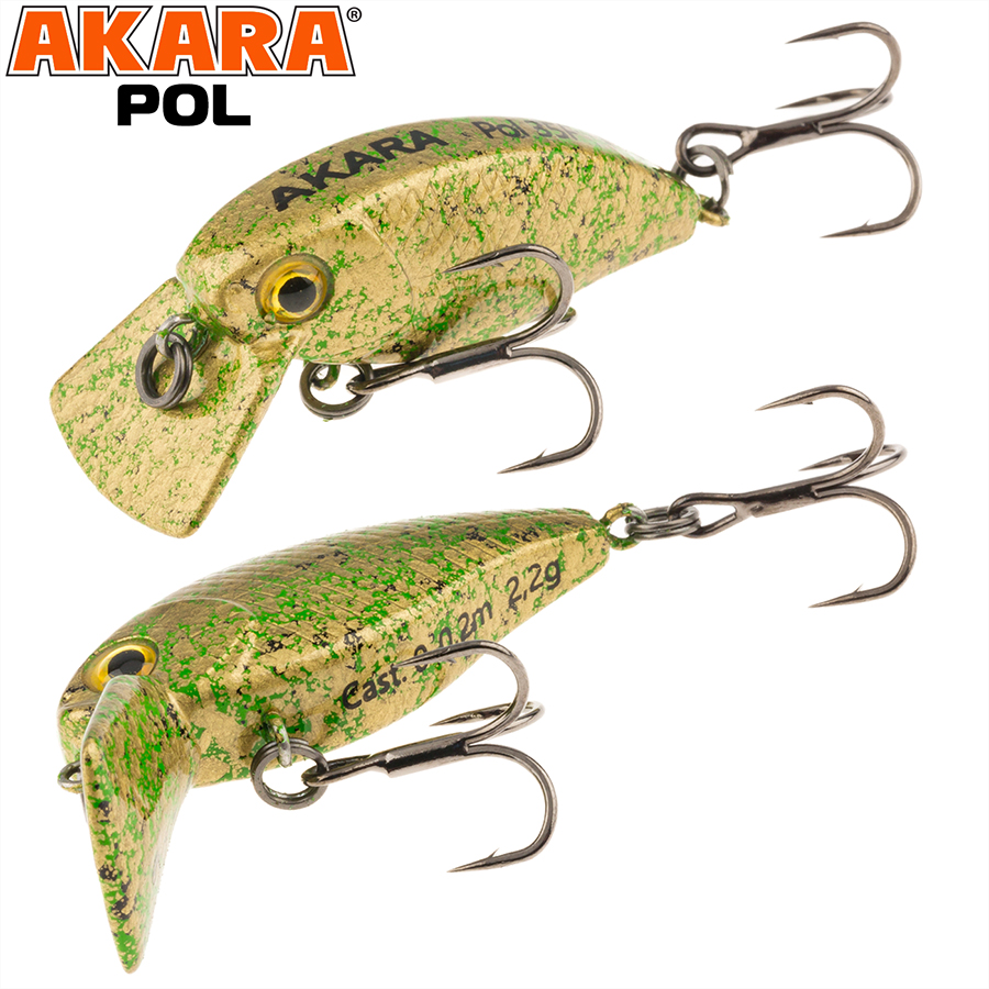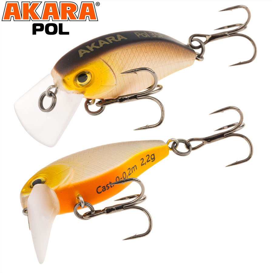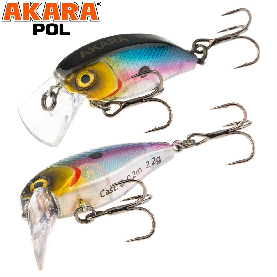 Воблер Akara Pol - этот кренк обладает нейтральной плавучестью. Изменяя вес крючков его можно сделать как медленно всплывающим, там и медленно тонущим. Для данной приманки подходят самые разнообразные варианты проводки: равномерная, стоп энд гоу, лёгкий твичинг. И самое главное, что продолжительность пауз можно сильно увеличивать, что имеет значение при ловле капризной рыбы. Akara Pol хорошо подойдёт для ловли разнообразной рыбы. Его трофеями могут стать как форель и голавль, так и окуни со щуками. Тонущий.