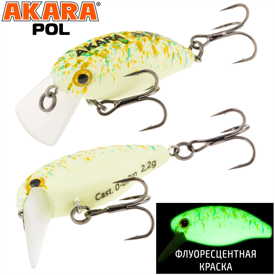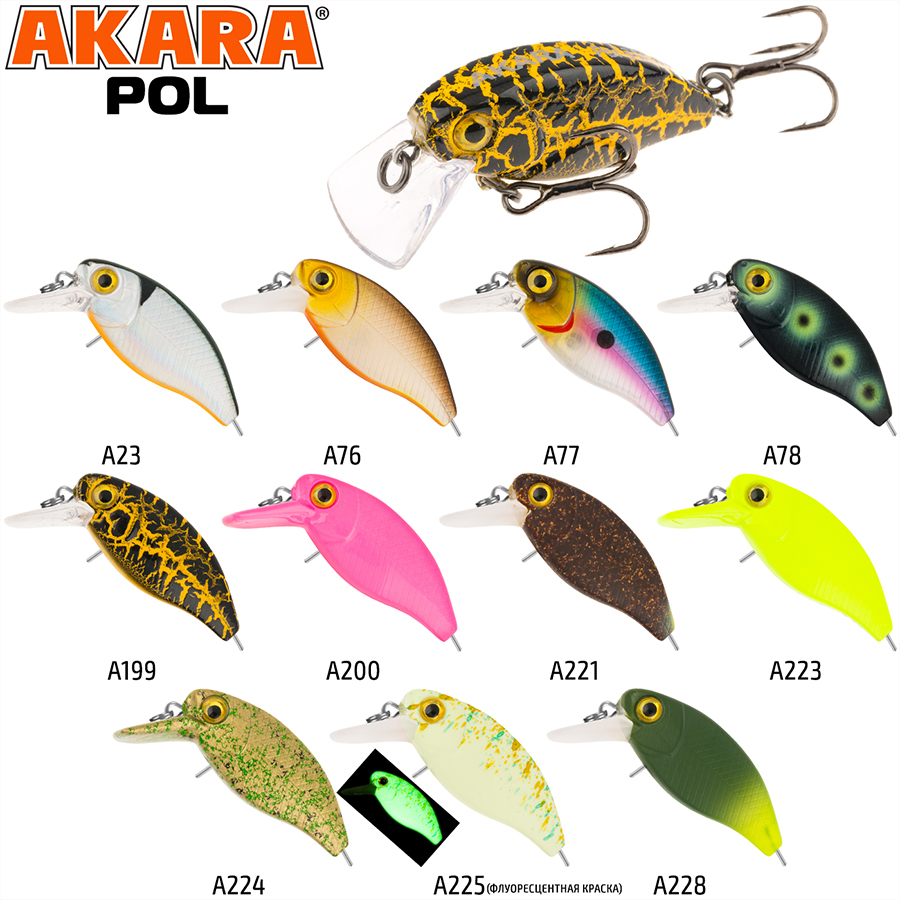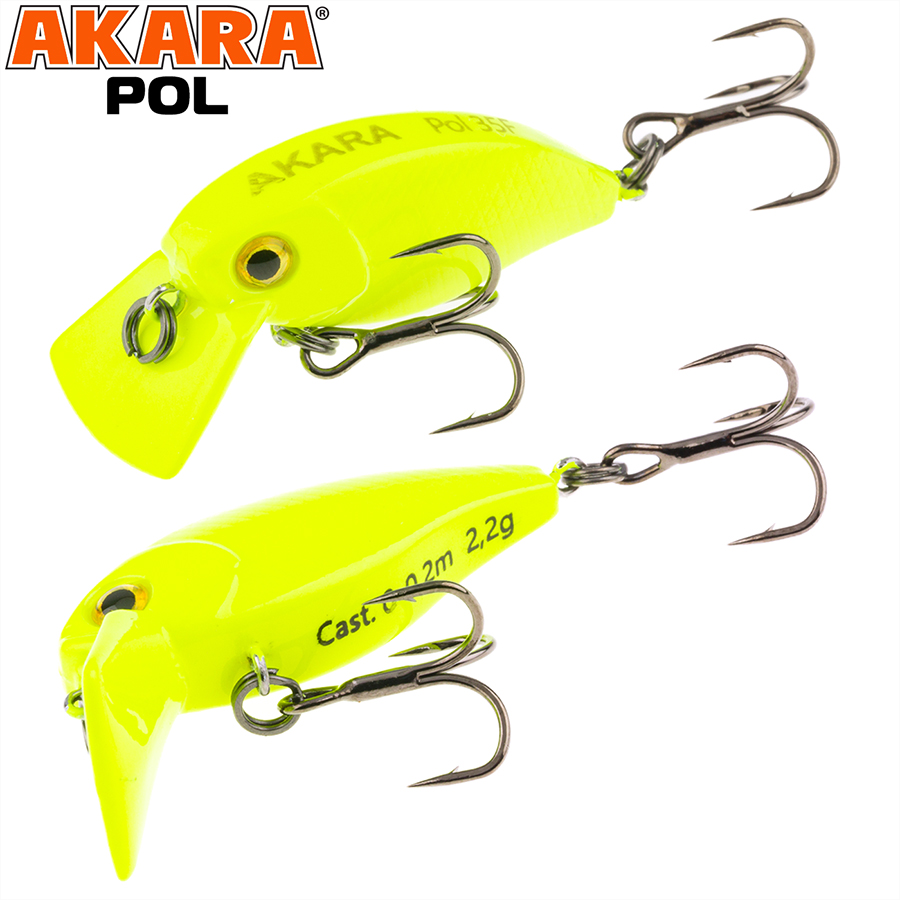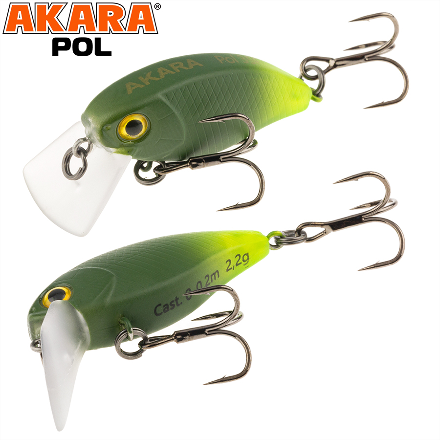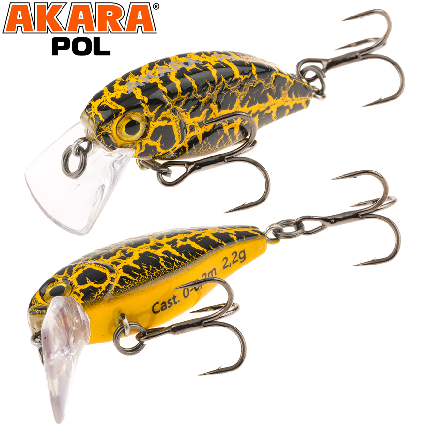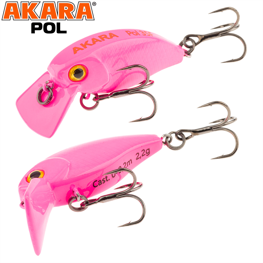 Воблер Akara Pol - этот кренк обладает нейтральной плавучестью. Изменяя вес крючков его можно сделать как медленно всплывающим, там и медленно тонущим. Для данной приманки подходят самые разнообразные варианты проводки: равномерная, стоп энд гоу, лёгкий твичинг. И самое главное, что продолжительность пауз можно сильно увеличивать, что имеет значение при ловле капризной рыбы. Akara Pol хорошо подойдёт для ловли разнообразной рыбы. Его трофеями могут стать как форель и голавль, так и окуни со щуками. Тонущий.