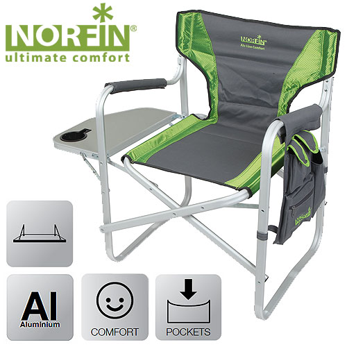 Кресло складное с алюминиевым каркасом, откидным столиком, боковым карманом для телефона и мелочей, смягченное сиденье и спинка. Конструкция ножек кресла придает дополнительную устойчивость креслу, препятствует его проваливанию в песок или рыхлую землю. Габариты (см): 47x42x43/80. Размер в сложенном виде (см): 82x53x10. Вес (кг): 3,5. Максимальная нагрузка (кг): 100. Материал: 600D polyester, 420DRipStop Nylon. Каркас: алюминий 30х16мм.