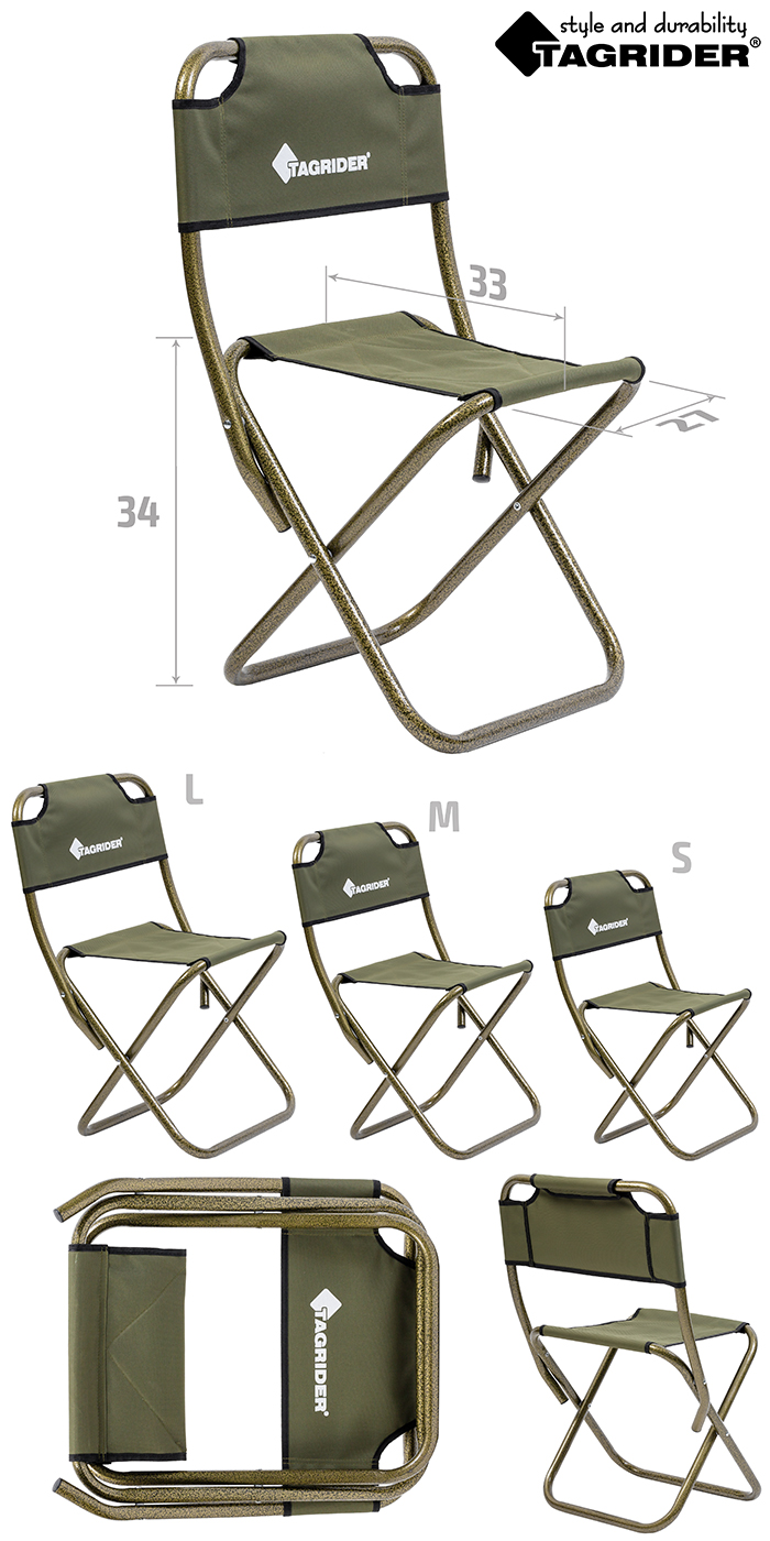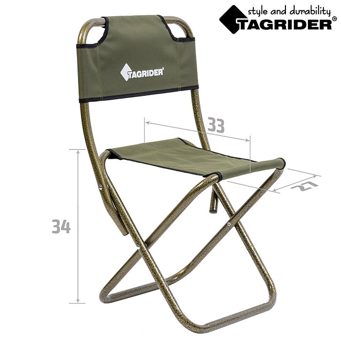 Стул Tagrider HBA-10S складной стальной со спинкой малый. Отлично подойдет для продолжительных трекинговых переходов, охоты и рыбалки.
