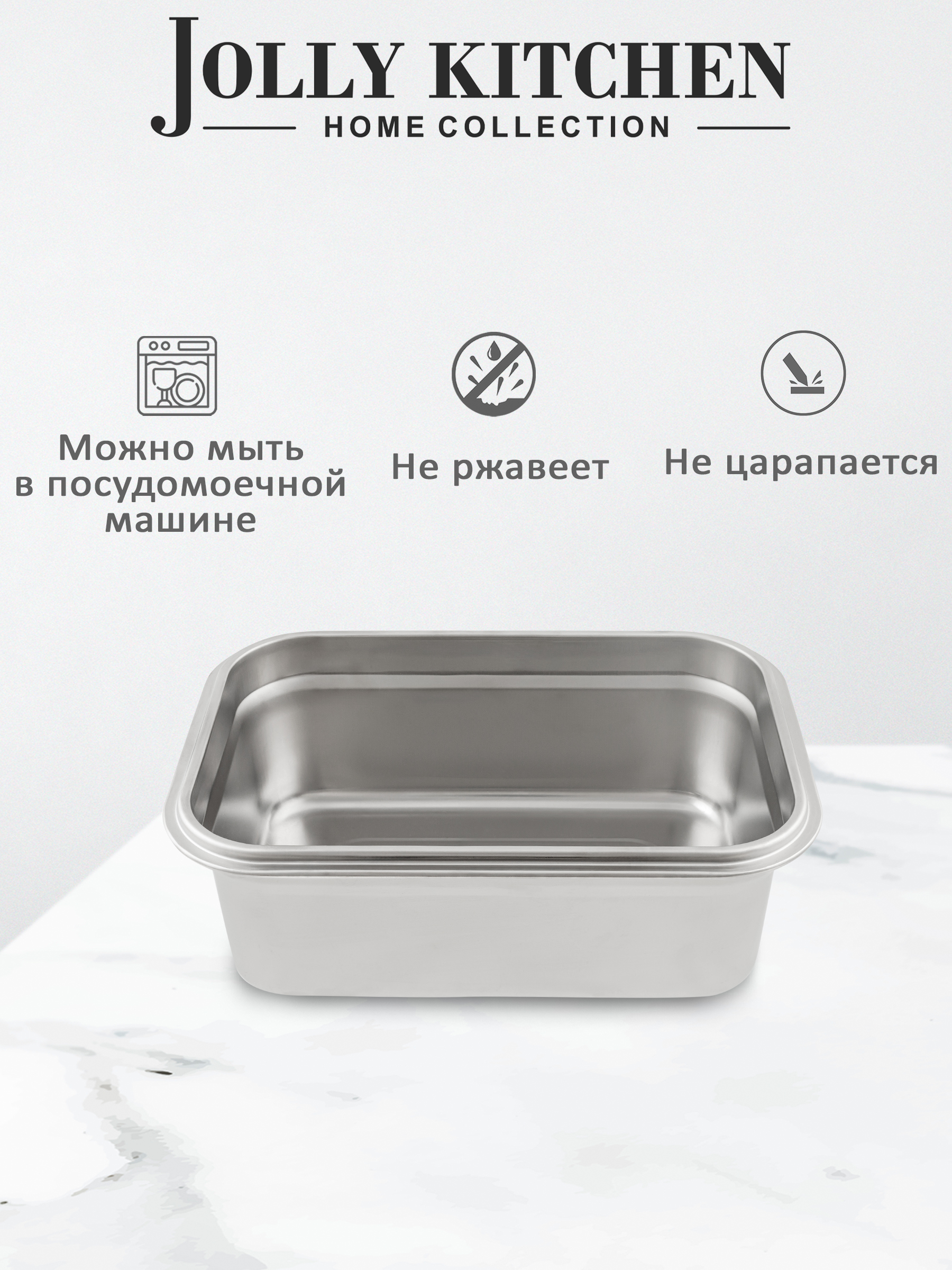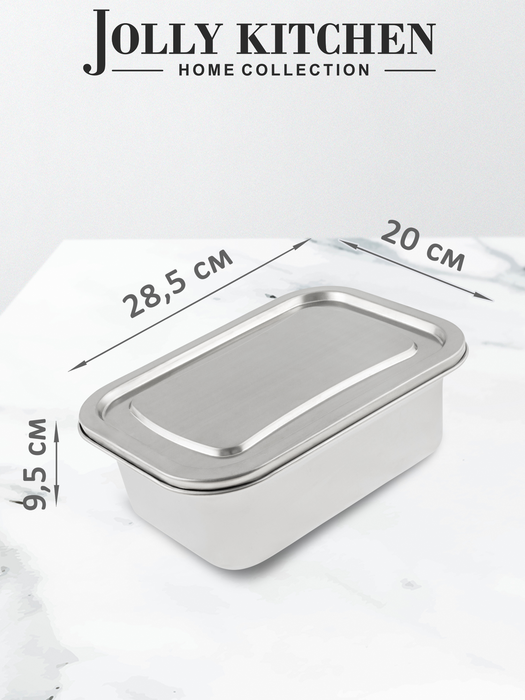 Контейнер пищевой Jolly Kitchen с крышкой из нержавеющей стали – это премиальное решение для хранения, транспортировки и сервировки еды. Изготовленный из высококачественной стали AISI 201, он сочетает стиль, долговечность и гигиеничность, превосходя пластик и стекло. Контейнер безопасен для пищевых продуктов, не впитывает запахи, подходит для горячих и холодных блюд, а его стильный дизайн идеален для кухни, пикников, офиса и путешествий. Доступные размеры: 2,3 л (25x17,5x9 см) – для обедов и салатов, 3 л (28,5x20x9,5 см) – для вторых блюд и супов, 4,5 л (32x23x10,5 см) – для больших порций, 6 л (35,5x25,5x11,5 см) – для круп и заготовок, 10 л (40x28,5x12,5 см) – для кейтеринга. Контейнеры экологичны, прочны, гигиеничны и легко моются в посудомоечной машине. Идеальный выбор для обедов на работу, хранения продуктов, пикников и профессиональной кухни.