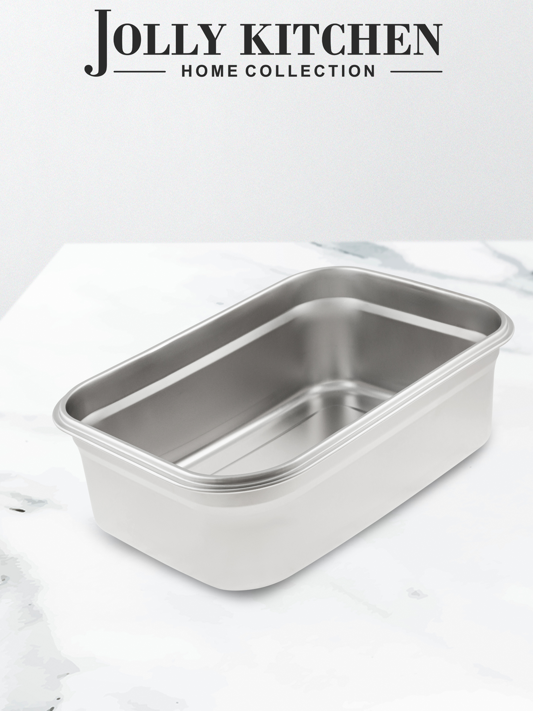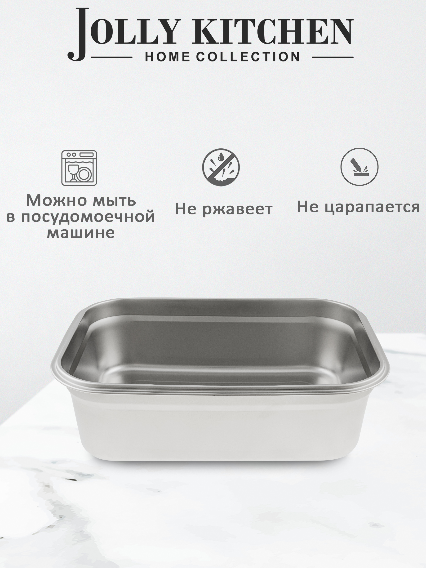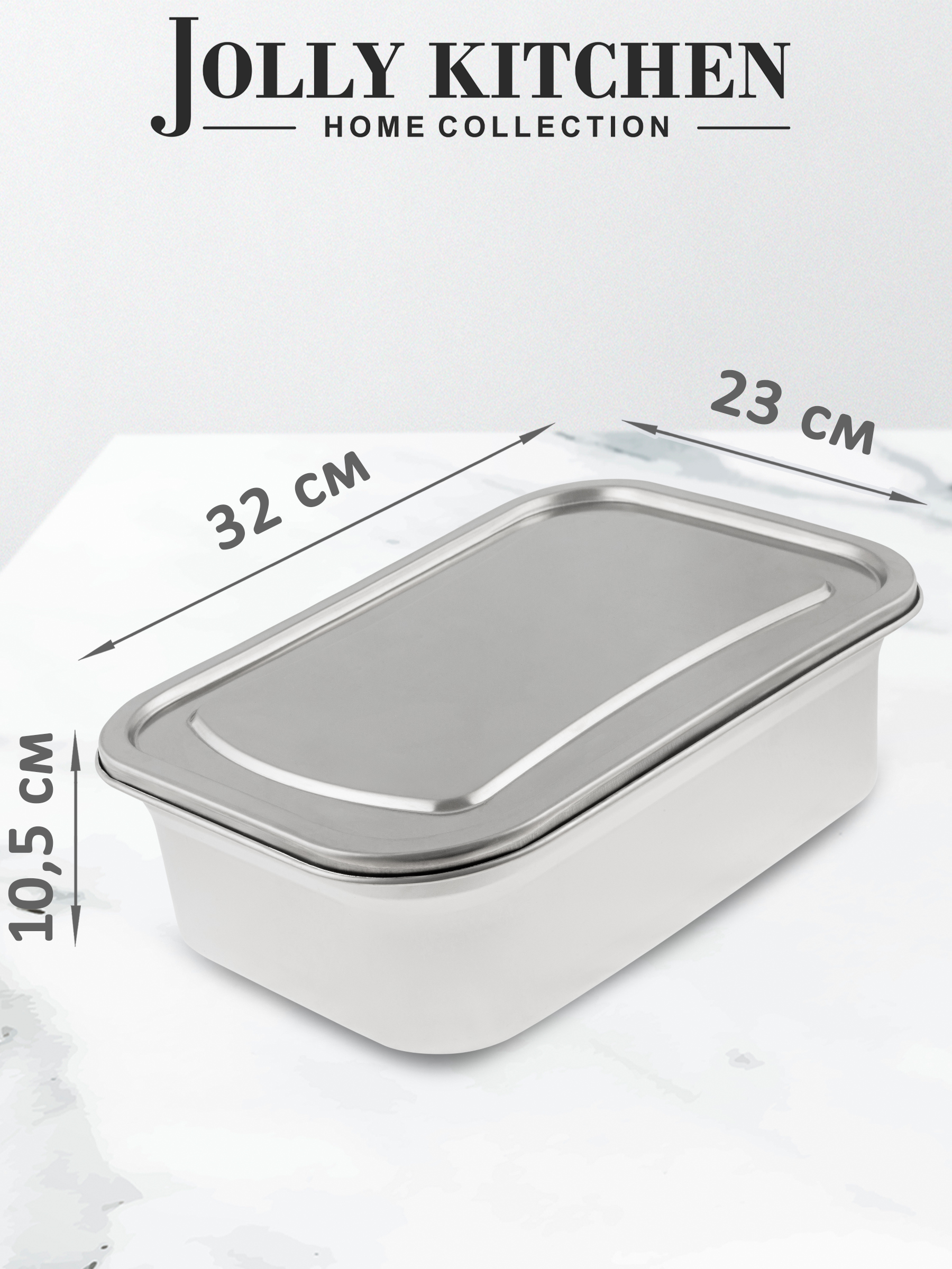 Контейнер пищевой Jolly Kitchen с крышкой из нержавеющей стали – это премиальное решение для хранения, транспортировки и сервировки еды. Изготовленный из высококачественной стали AISI 201, он сочетает стиль, долговечность и гигиеничность, превосходя пластик и стекло. Контейнер безопасен для пищевых продуктов, не впитывает запахи, подходит для горячих и холодных блюд, а его стильный дизайн идеален для кухни, пикников, офиса и путешествий. Доступные размеры: 2,3 л (25x17,5x9 см) – для обедов и салатов, 3 л (28,5x20x9,5 см) – для вторых блюд и супов, 4,5 л (32x23x10,5 см) – для больших порций, 6 л (35,5x25,5x11,5 см) – для круп и заготовок, 10 л (40x28,5x12,5 см) – для кейтеринга. Контейнеры экологичны, прочны, гигиеничны и легко моются в посудомоечной машине. Идеальный выбор для обедов на работу, хранения продуктов, пикников и профессиональной кухни.