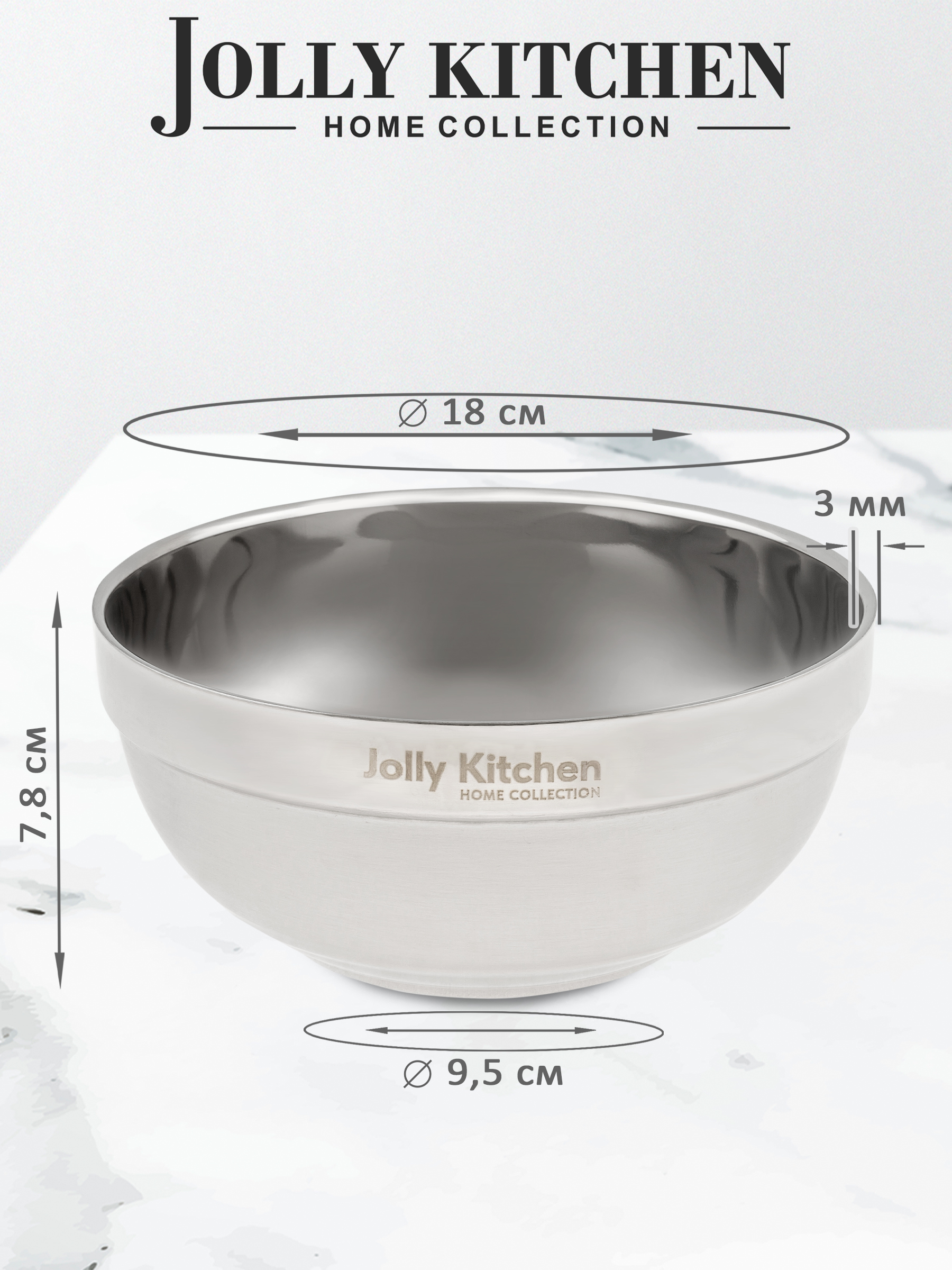 Миска Jolly Kitchen нерж.сталь двойные стенки глубокая диам. 18 см