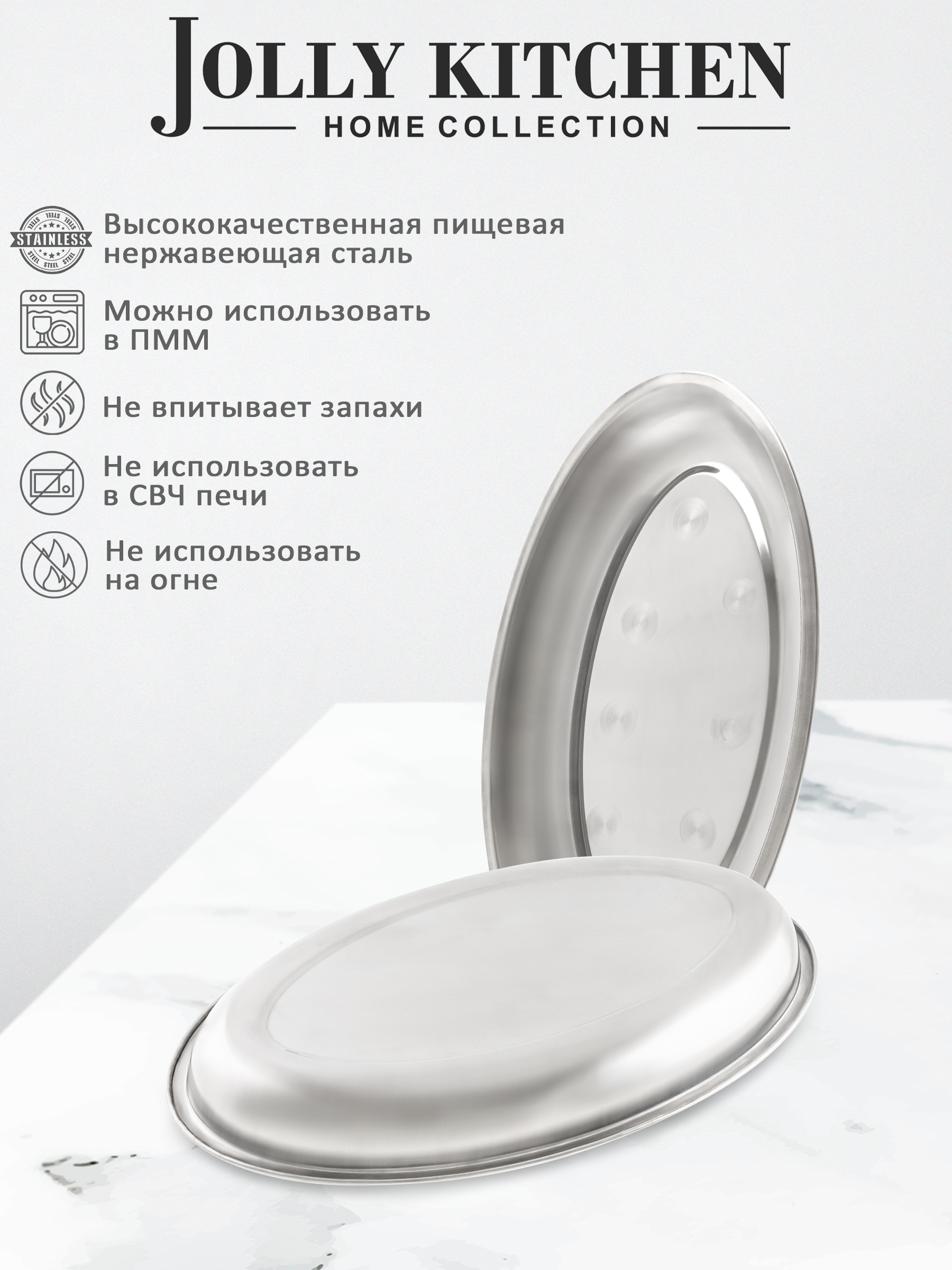 Подносы Jolly Kitchen из нержавеющей стали – универсальные аксессуары для сервировки и хранения. В коллекции представлены овальные (40 и 35 см) и прямоугольные (32x22, 36x27, 40x30 см) модели. Изготовлены из прочной нержавеющей стали с зеркальной полировкой, устойчивы к царапинам и деформации. Удобные бортики предотвращают падение предметов. Подходят для сервировки стола, хранения продуктов, организации фуршетов и рабочих поверхностей. Легко моются в посудомоечной машине. Идеальны для домашнего использования, ресторанов и кейтеринга. Сочетают практичность и элегантный дизайн.