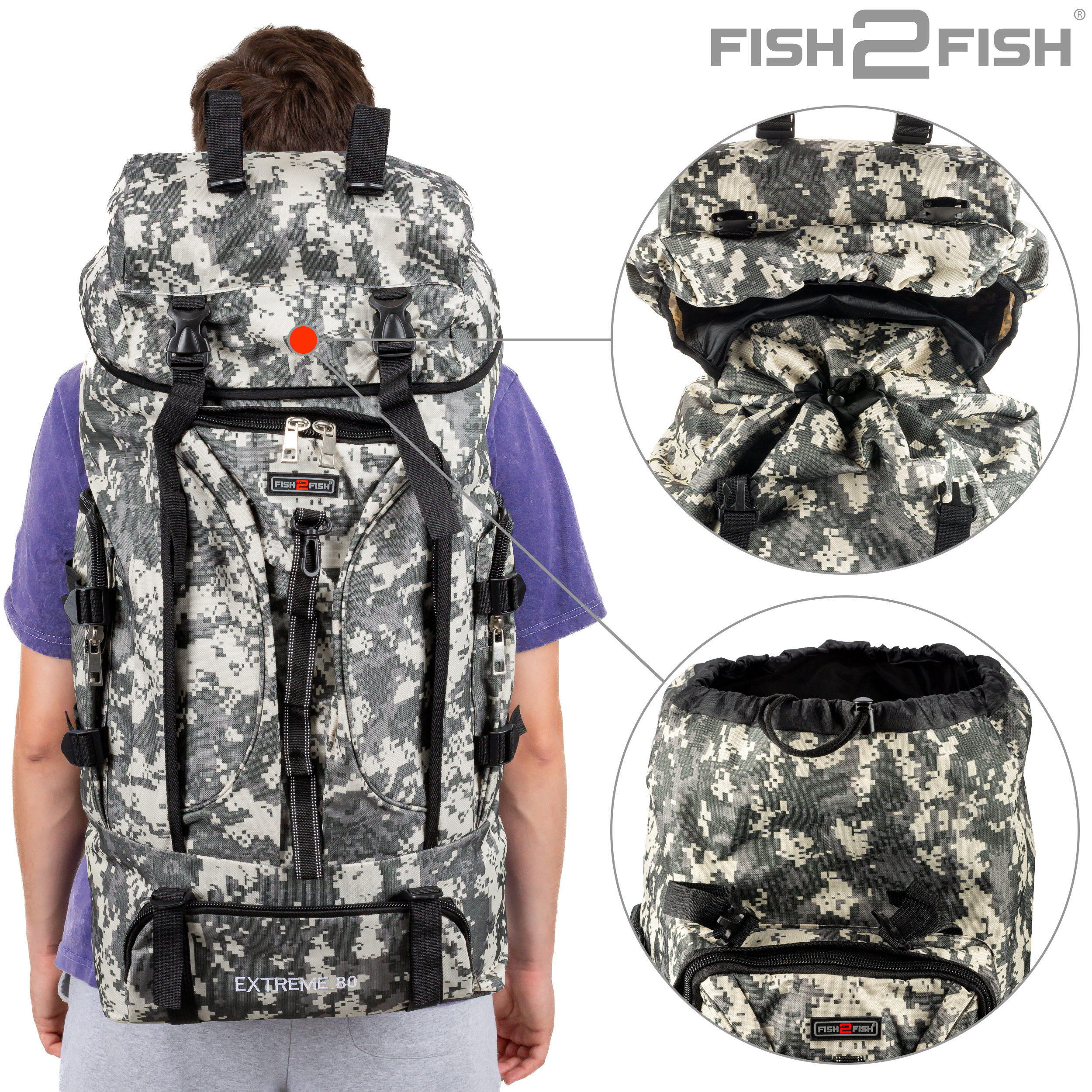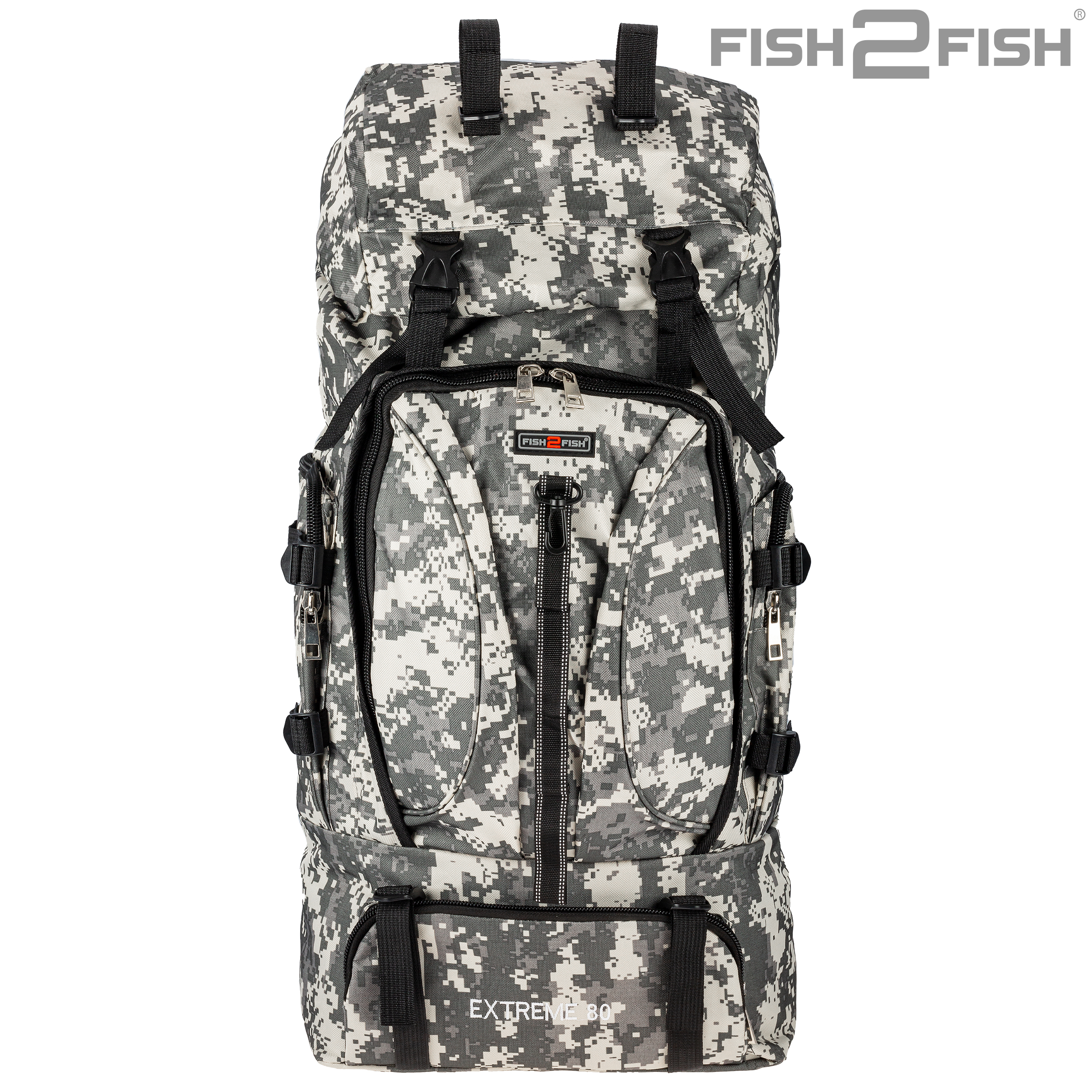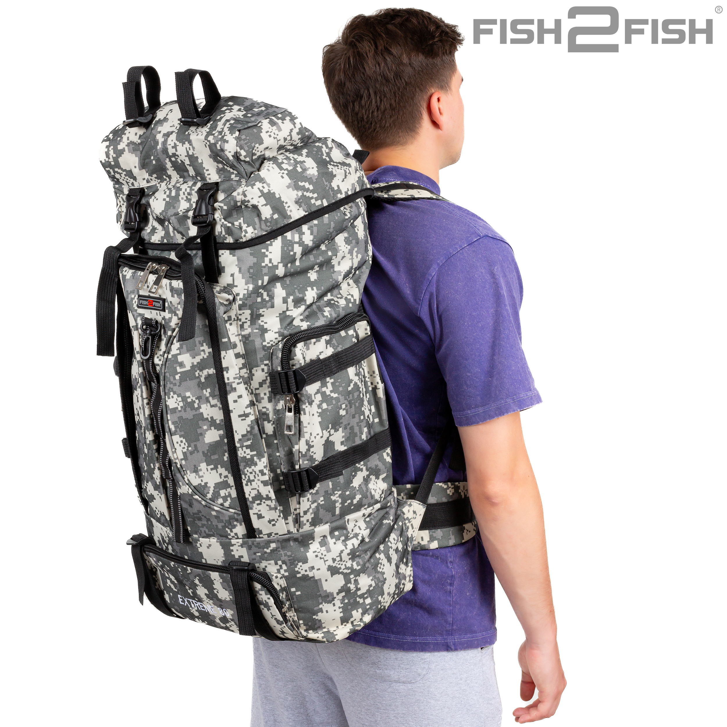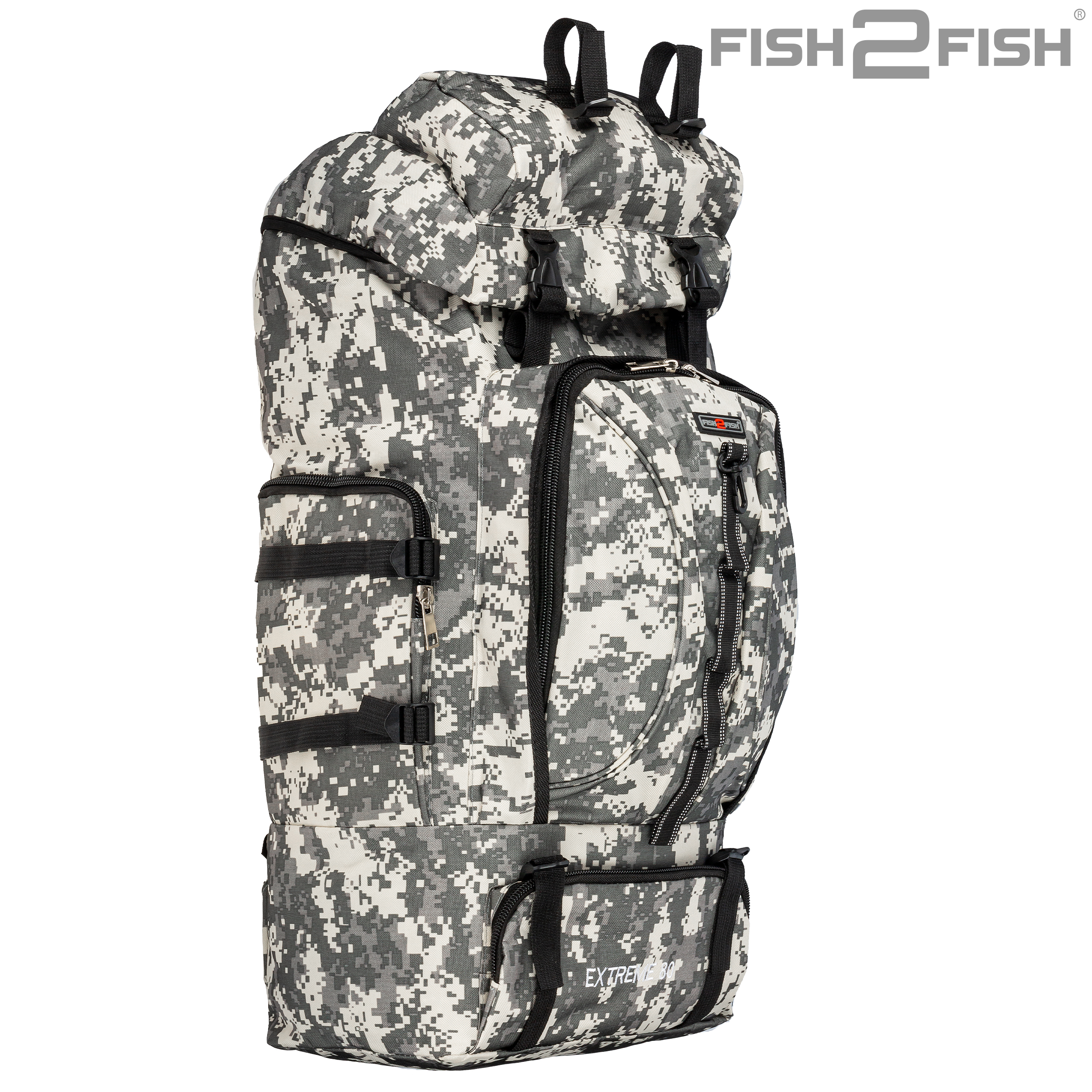 Рюкзак Fish2Fish Extreme серая цифра 80 л - предназначен для рыбалки, охоты и активного отдыха. Имеет один основной затягивающийся отсек, дополнительно закрывающийся клапаном на защелках с карманом на замке, количество наружных карманов на замках – 4. Спинка рюкзака имеет анатомические мягкие вставки. По бокам и внизу рюкзака имеются регулировочные шлейки. Наплечные лямки рюкзака дополнительно оснащаются разгрузочным креплением на грудь и на пояс, также оснащеные защелкой. Замки очень прочные и надежные, все шлейки регулируемые и съемные. Рюкзак выполнен из трехслойного материала: OXFORD 600D PU500 Высота – 70 см. Глубина – 25 см. Ширина – 35 см.