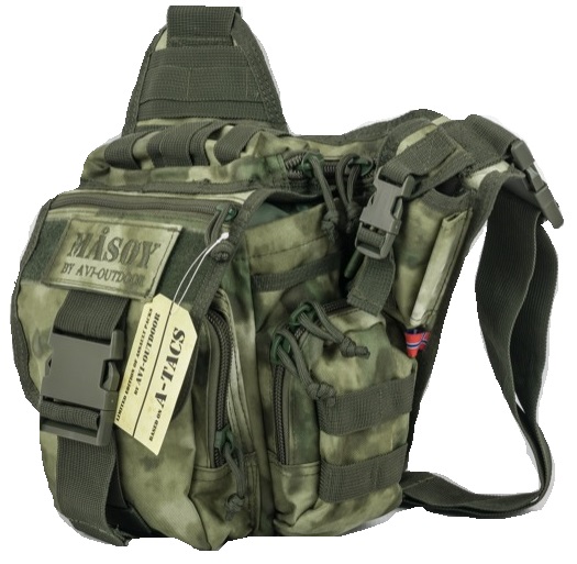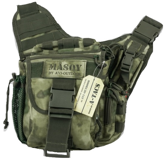 Сумка Mas?y . На сумке расположена платформа на липучках для именной и других нашивок. На лицевой, а так же боковой части сумки находятся петли типа MOLLE для навешивания дополнительного снаряжения. Сумка имеет 5 карманов на молнии и один на защелке Fast-Tex. В общей сложности сумка имеет 5 плоских карманов, 3 объемных и 1 основной. Размер основного отделения 203x165x76mm. Материал: Polyester 600 D PVC. Объем: 5 литров.