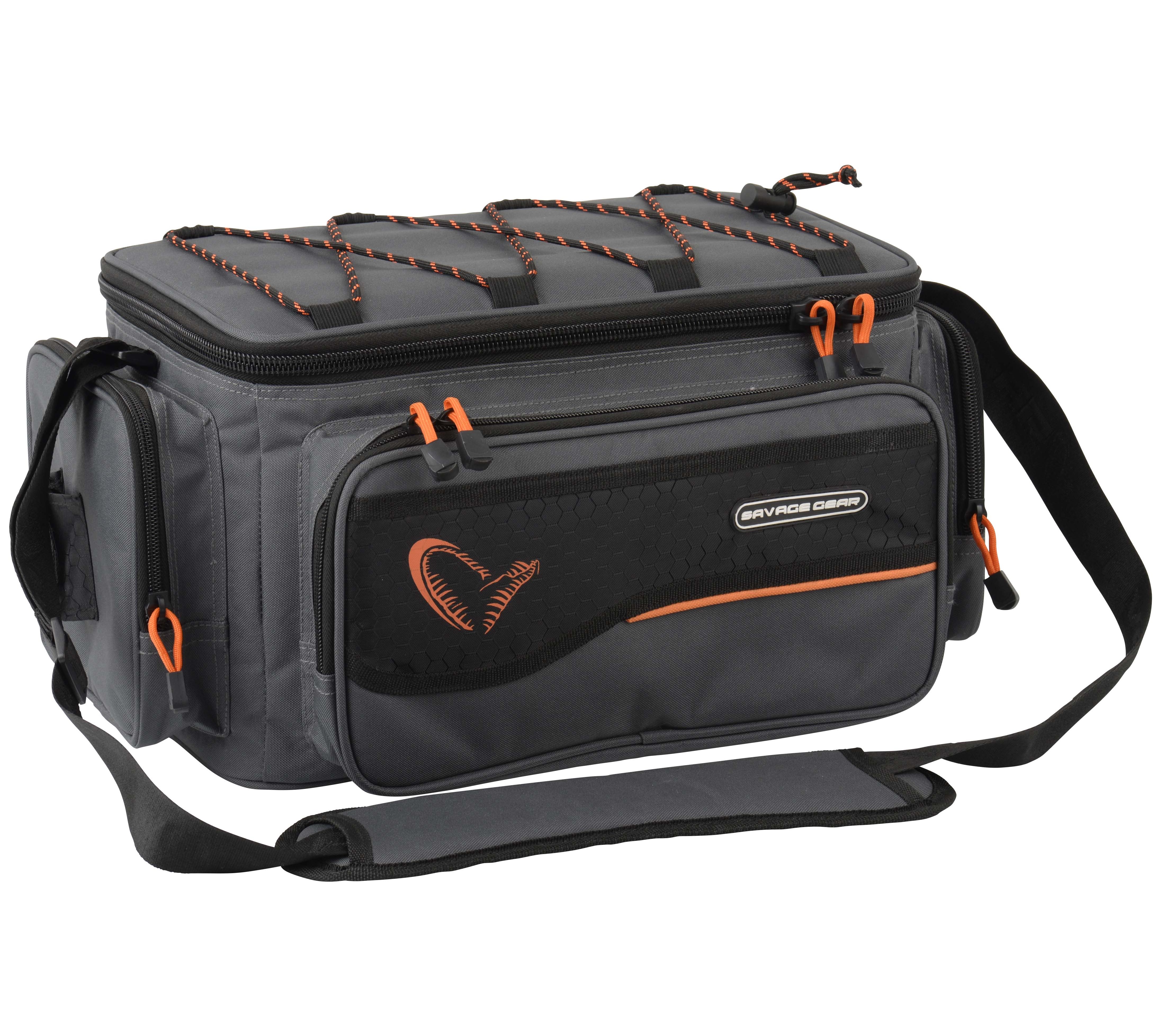 Рыболовная сумка Savage Gear System Box M выполнена из прочного износостойкого синтетического материала плотностью 600D. В её просторном внутреннем отделении, снабжённом застёжкой- молнией , вертикально размещаются четыре пластиковые коробки под приманки. Коробки имеют регулируемые секции. С лицевой стороны и с боков сумка оборудована тремя большими накладными карманами на застёжках- молниях , в которых можно разместить рыболовный инструментарий. Для удобной транспортировки сумка оборудована регулируемым плечевым ремнём с мягкой накладкой и двумя ручками. Габариты сумки: 20x40x27см. Размеры коробок: 27x18x4cм - 3 шт.