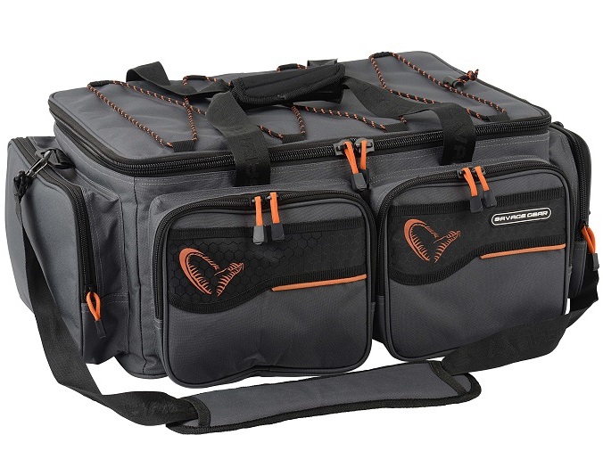 Рыболовная сумка Savage Gear System Box XL выполнена из прочного износостойкого синтетического материала плотностью 600D. Её просторное внутреннее отделение закрывается сверху большим клапаном, снабжённым застёжкой-молнией. Внутри размещаются три большиих пластиковых коробки под приманки, а также предусмотрено место под рыболовный инструментарий и личные вещи. С лицевой стороны сумки, а также с её боков размещаются четыре дополнительных накладных кармана, также снабжённых застёжками- молниями . Для удобной транспортировки сумка оборудована регулируемым плечевым ремнём с мягкой накладкой и двумя ручками. Габариты сумки: 25x42x53см. Размеры коробок: 8x22x36см - 3 шт.