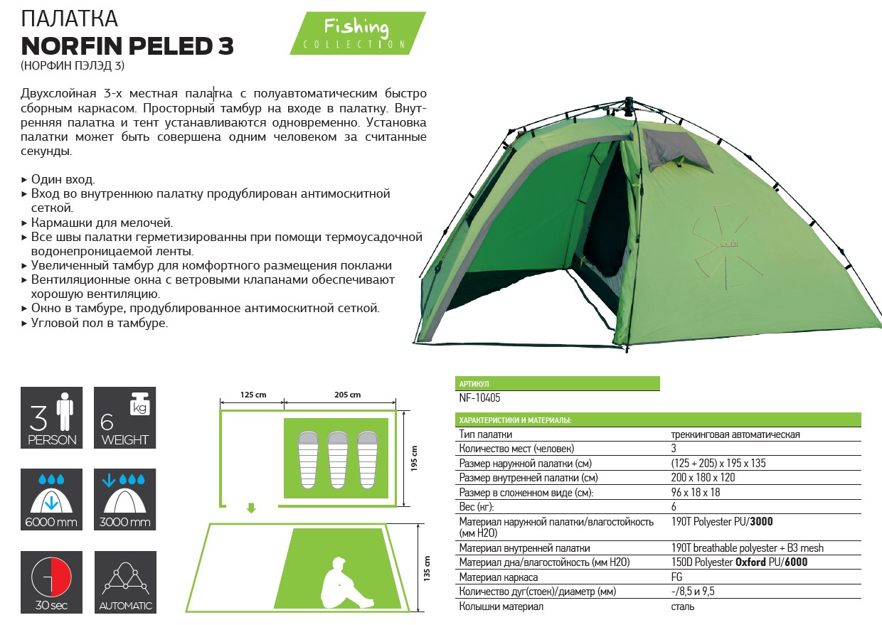 Палатка автоматическая трехместная Norfin Peled 3 Nf |