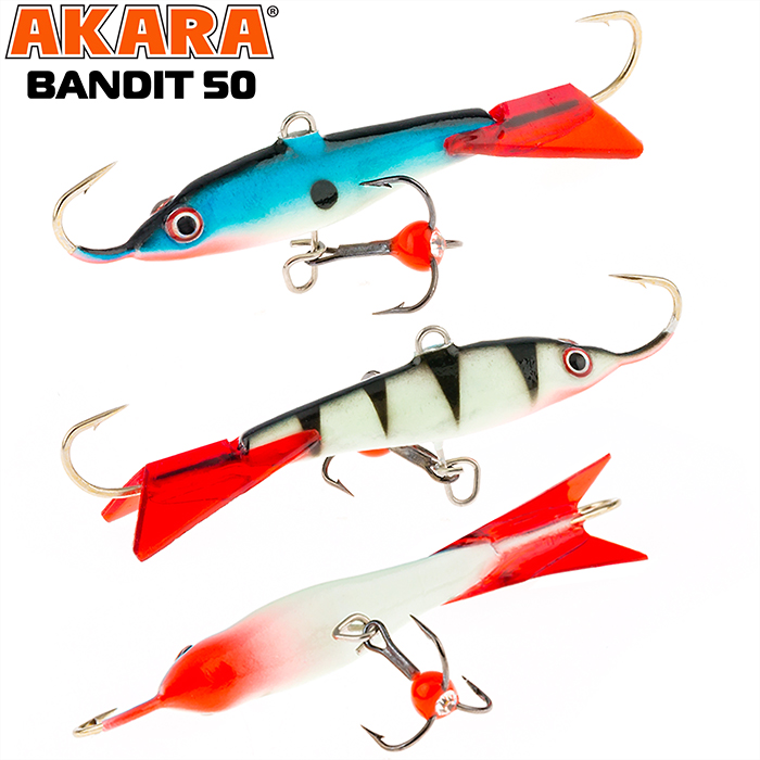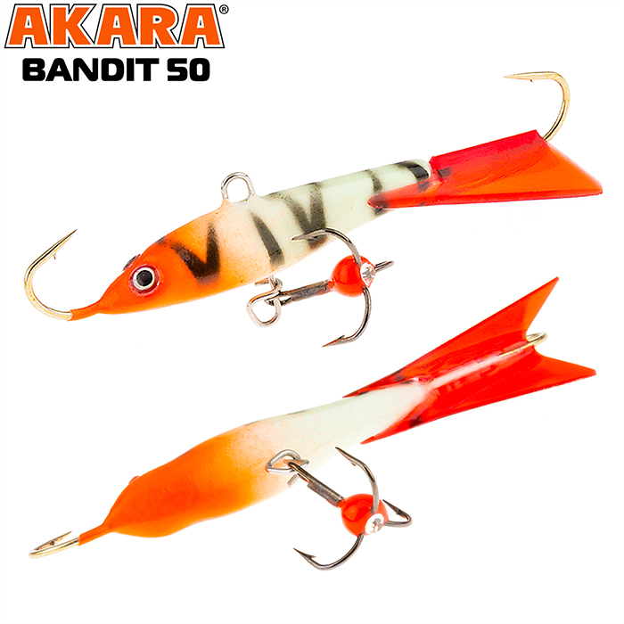 Балансир Akara Bandit 50 - разработан для зимней рыбалки, является популярной и эффективной приманкой для ловли окуня. Балансир изготовлен из качественных, морозостойких материалов и оснащен высокопрочными крючками и тройниками японской компании Maruto. Длинна балансира 50 миллиметров, вес – 8 грамм. Балансиры этой модели красятся в уловистые цвета, причем окрашивание осуществляется с применением флуоресцентных UV красок (светятся в ультрафиолетовом диапазоне), либо с использованием люминесцентных фосфорных красок (светятся в темноте). Существуют также варианты двухсторонней окраски. Балансир имеет акцентированную, стабильную и предсказуемую игру, легко отзывается на анимацию и прекрасно подойдет не только опытным любителям зимней рыбалки, но и начинающим рыболовам.