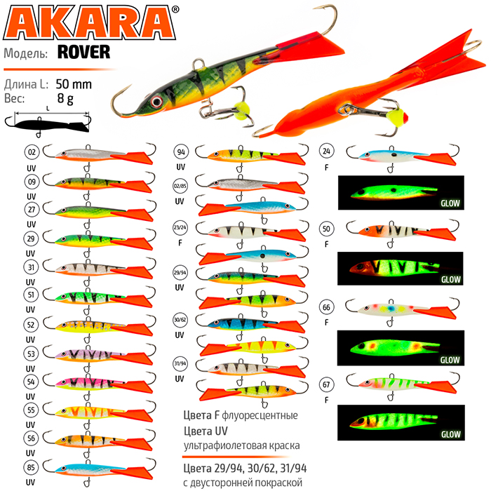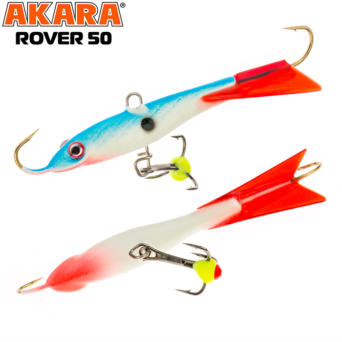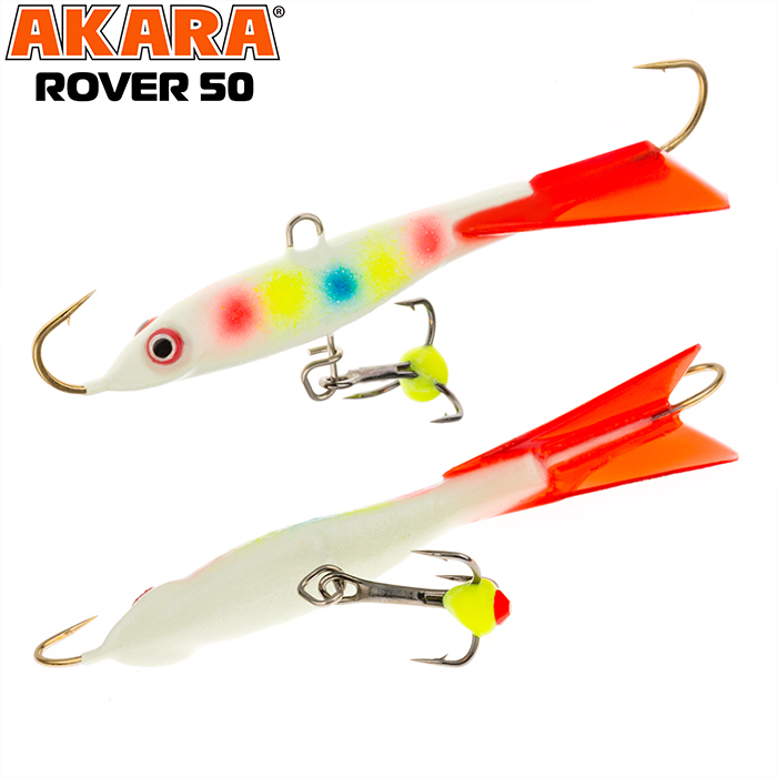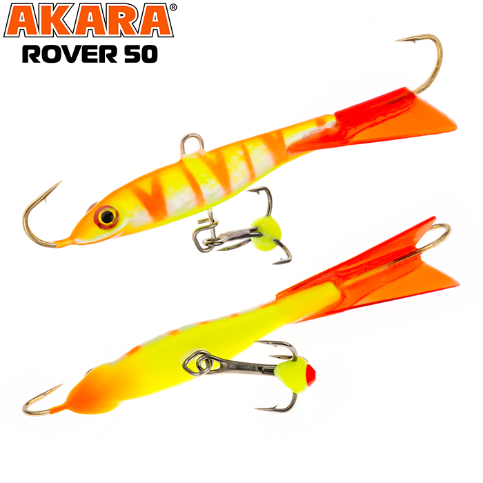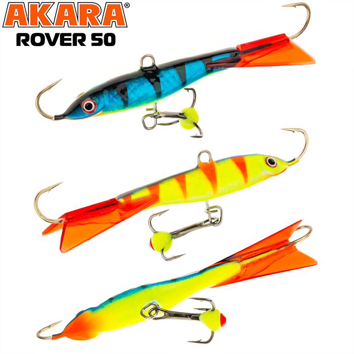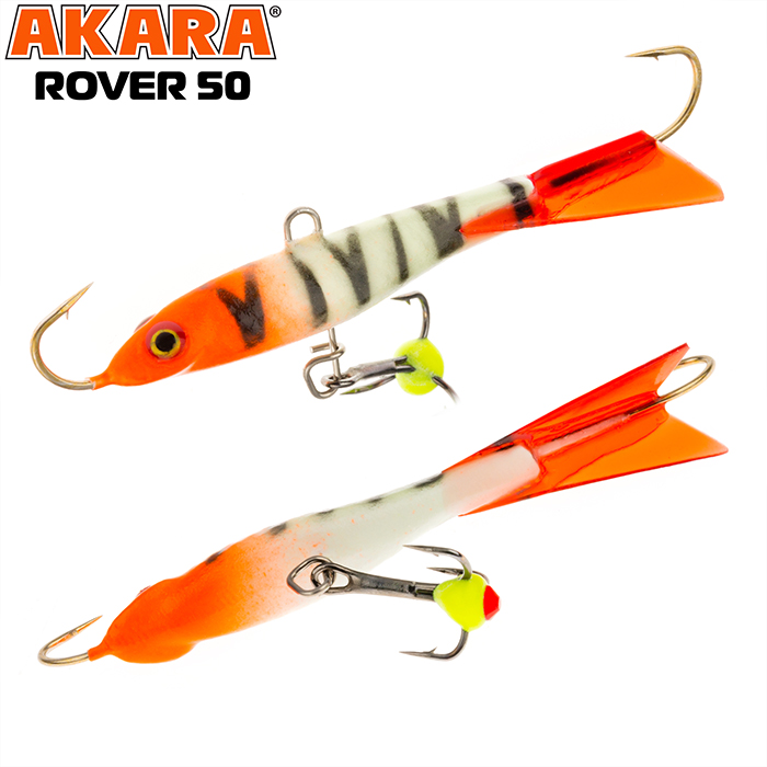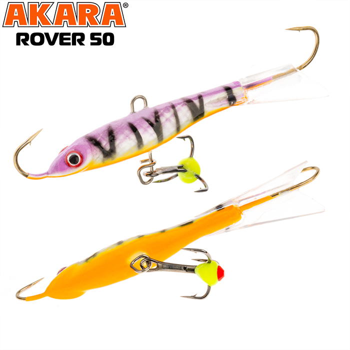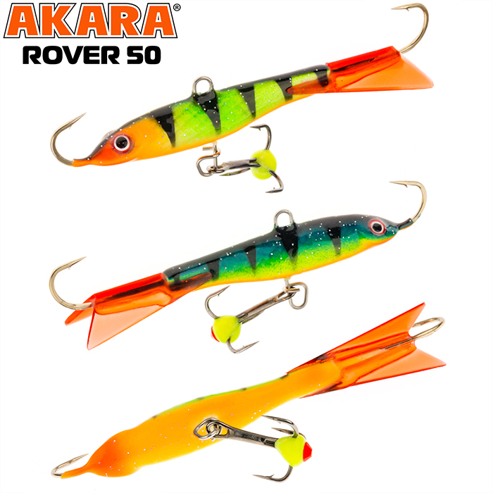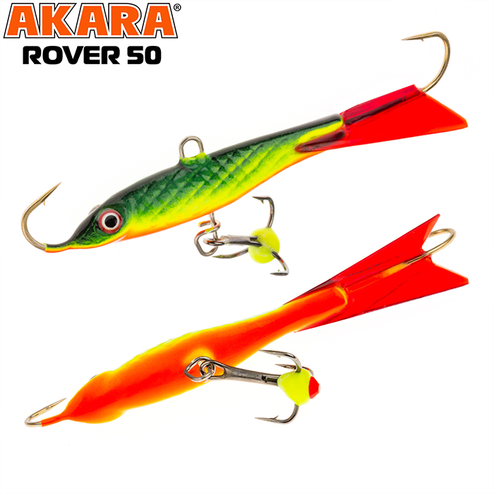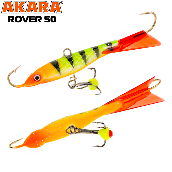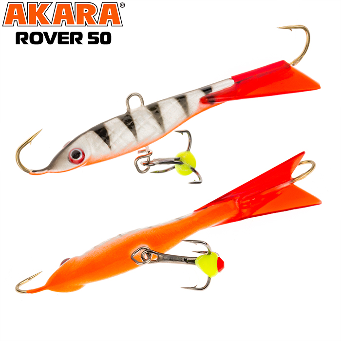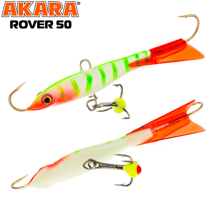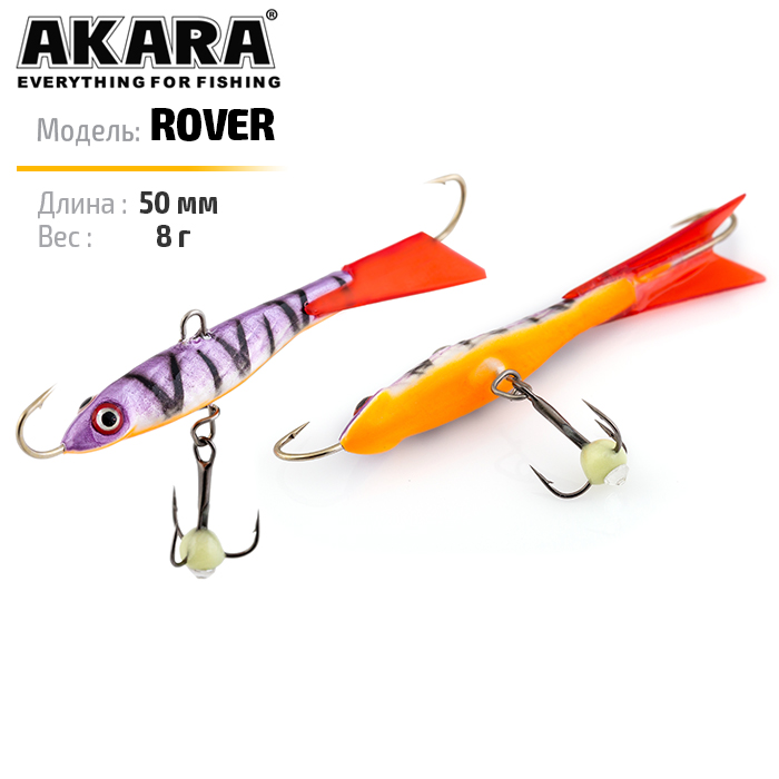 Балансир Akara Rover 50 разработан для зимней ловли хищных рыб, таких как окунь и судак. Балансир изготовлен из качественных, морозостойких материалов и оснащен высокопрочными крючками и тройниками японской компании Maruto. Длина балансира 50мм, вес - 8г. Балансиры этой модели красятся в уловистые цвета, причем окрашивание осуществляется с применением флуоресцентных UV красок (светятся в ультрафиолетовом диапазоне), либо с использованием люминесцентных фосфорных красок (светятся в темноте). Балансир прекрасно отзывается на анимацию и имеет яркую, высокоамплитудную игру, которая может спровоцировать на поклевку даже пассивного хищника. Балансир Akara Rover 50 станет прекрасным пополнением арсенала любителей зимней рыбалки.