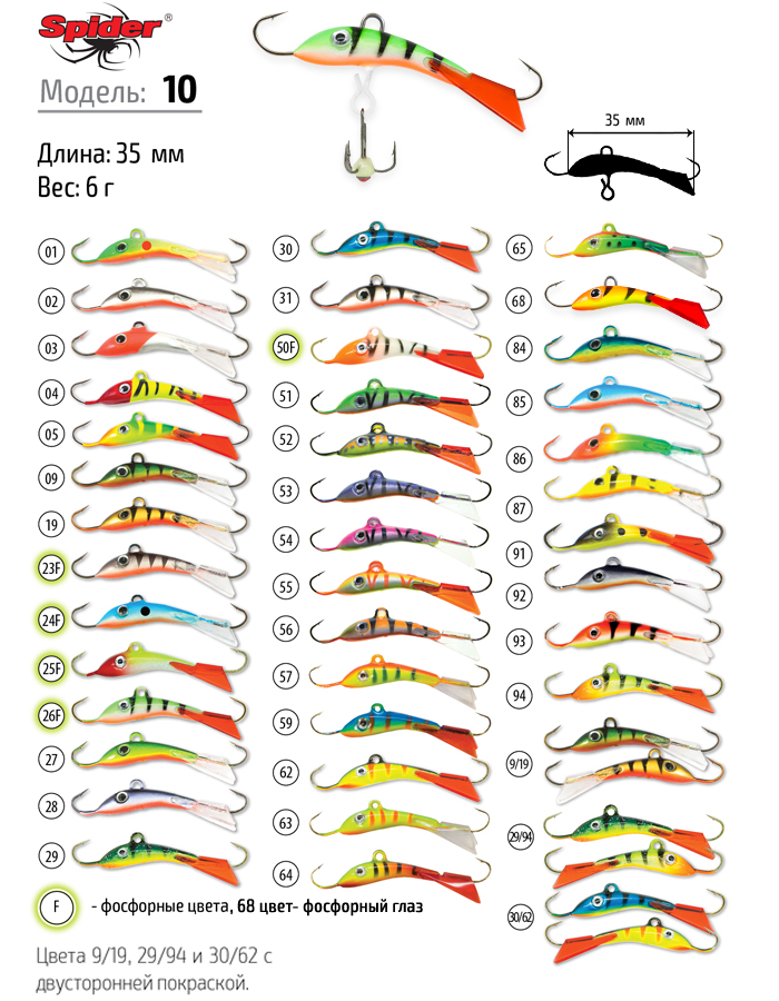 Балансир Spider Pro 10 - имеет характерную, «бананообразную» фору туловища и предназначен для ловли окуня. Приманка обладает характерной «окунёвой» игрой, отличающейся в зависимости от амплитуды колебаний. Это позволяет эффективно привлекать рыбу и провоцировать атаку приманки. Балансир сконструирован так, что даже на самой резкой игре не захлёстывается леской за крючки.
