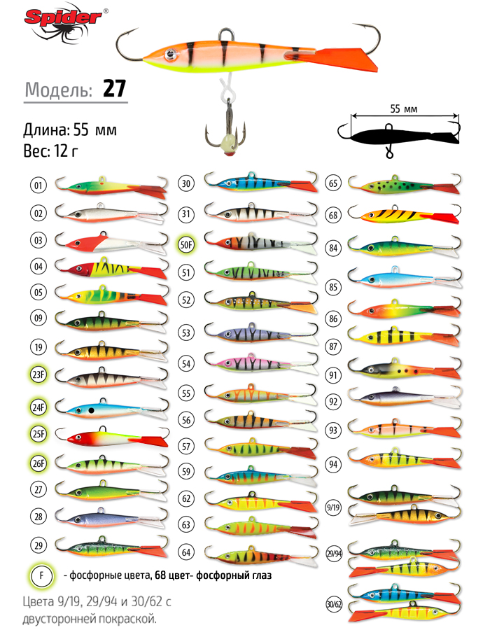 Балансир Spider Pro 27 имеет веретенообразную форму и обладает очень интересной, повторяемой игрой с плавным возвратом к вертикали, как на большой амплитуде, так и при небольших подбросах. Благодаря повторяемости игры этот балансир подойдет как опытным, так и начинающим рыболовам. Плавная, замедленная игра приманки привлекает окуня, щуку и судака. Балансир выполнен из морозостойких материалов и оснащен крючками и тройником Maruto (Япония).