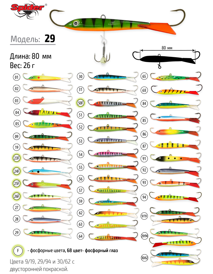 Балансир Spider Pro 29 - изготовлен из качественных материалов и оснащен мощными крючками и тройниками производства Японии способными удержать крупную рыбу. Обладает активной игрой и предназначен в первую очередь для ловли судака и щуки, которым такая игра очень нравится, но может быть атакован и крупным окунем. Подойдет для ловли на крупных стоячих водоемах, и на реках со средним и сильным течением.