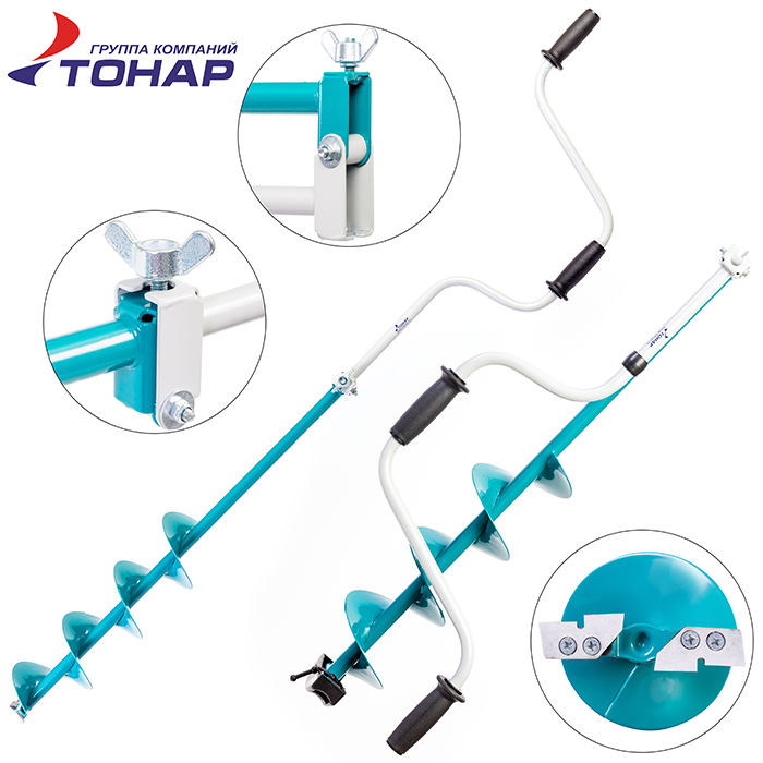 Ледобур Тонар ЛР-130Д (лев.вращ.) - рыболовный складной с правым вращением предназначен для бурения отверстий во льду при ловле рыбы. Основное и единственное отличие двуручных ледобуров от классических – верхняя рукоятка ледобура смещена относительно оси ледобура на 130 мм, а нижняя на 155 мм. Такое расположение рукояток позволяет вращать ледобур одновременно двумя руками, тем самым, увеличивая скорость бурения лунок во льду. Диаметр бурения: 130 мм. Глубина бурения: 1000 мм. Длина в рабочем положении: 1530 мм. Длина в сложенном положении: 805 мм. Вес ледобура: 2,5 кг (+/-0.2).