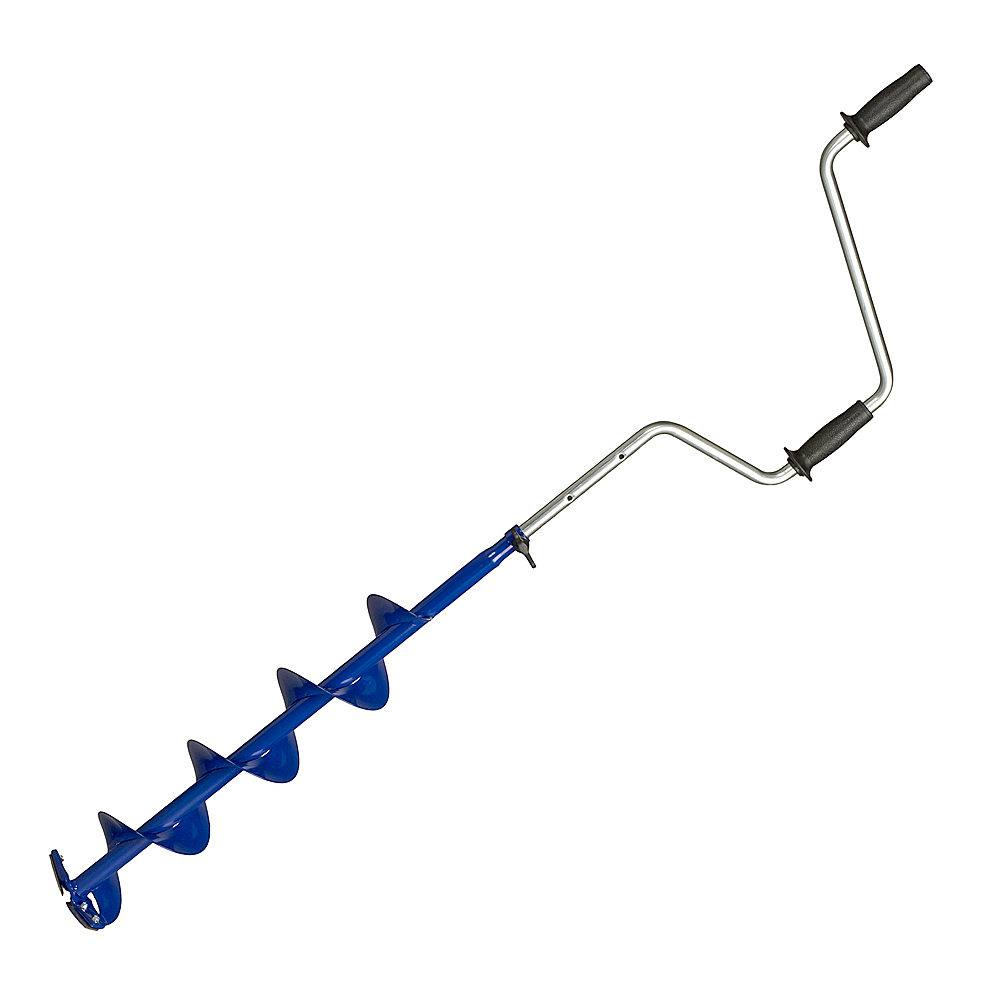 Модель имеет плоские ножи типа SPIRALEN и выдвижную рукоятку с тремя положениями. Высота шнека стандартная, позволяет сверлить лед толщиной до полуметра, не вытаскивая ледобур из лунки для прочистки ее от шуги. Ручка выдвигается из шнека и фиксируется на требуемой высоте винтом-барашком. Выпускается ледобур трех типоразмеров: 125,150 и 175/200 мм. Приобретя ледобур с диаметром сверления лунок 175/200, на него можно устанавливать ножи 175 или 200 мм. Получается, что один ледобур может сверлить лунки двух разных диаметров. Цвет окраски ледобура – синий.