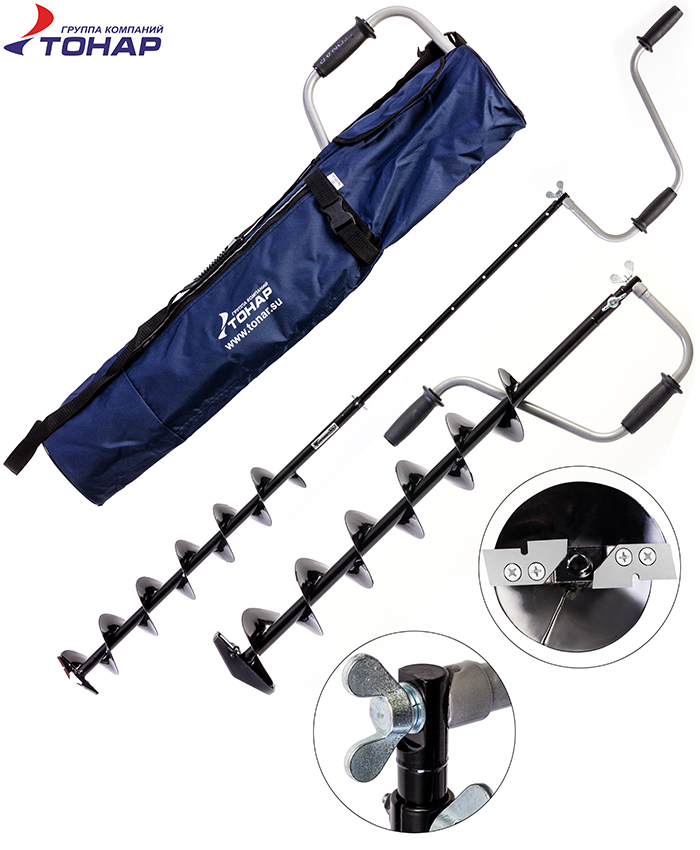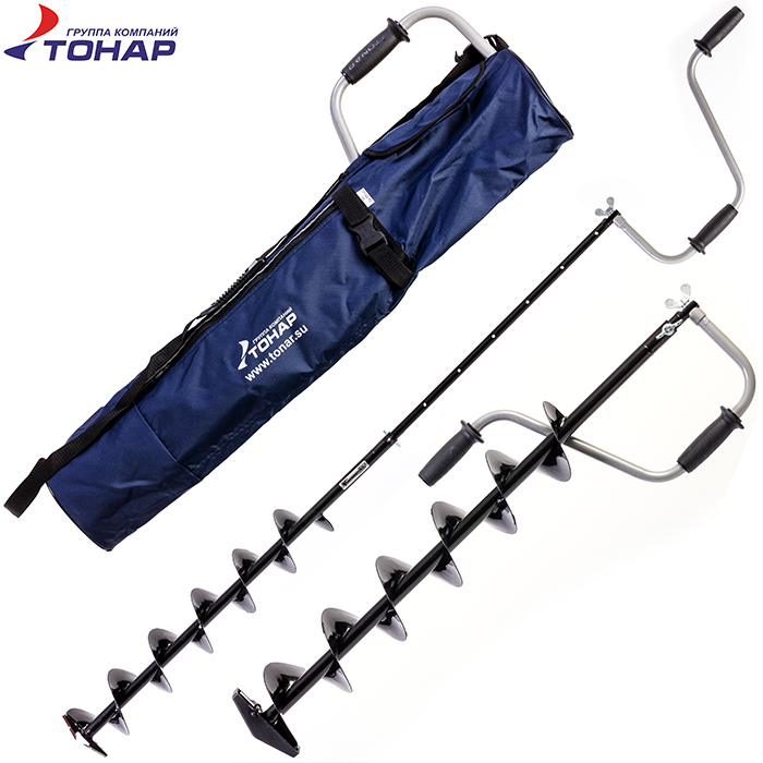 Ледобур ТОРНАДО М2 (складной, шнековый, двуручный с выдвижной штангой-удлинителем и левым вращением) предназначен для бурения отверстий во льду при спортивном лове рыбы. Главное новшество в ледобуре - изменен шаг резьбы на деталях замка, это позволило полностью решить проблему с самопроизвольным откручиванием барашка и ослаблением замка. Верхняя рукоятка ледобура смещена относительно оси ледобура на 125 мм, а нижняя на 155 мм. Такое расположение рукояток позволяет вращать ледобур одновременно двумя руками, тем самым увеличивая скорость бурения лунок. Поворотный механизм складывания рукоятки. Телескопическая вставка-удлинитель ступенчато увеличивает глубину бурения до 1430 мм. Полноразмерный чехол, выполненный их высокопрочной ткани Оxford 600D. Диаметр бурения - 130 мм. Глубина бурения - до 1470 мм. Длина в раб. положении 1340- 1970мм. Длина в слож. виде - 935 мм. Масса - 3,4 кг.