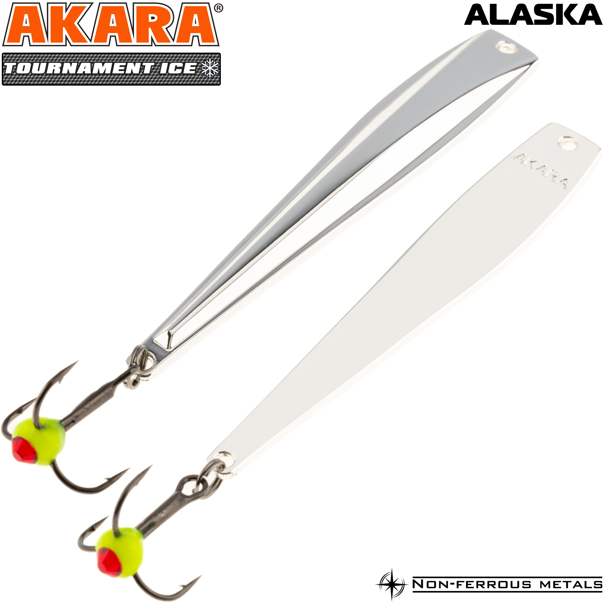 Блесна зимняя Akara Tournament Ice Alaska выпускаются в четырех размерах 50, 60, 70 и 80 мм. Блесна предназначена для ловли любой хищной рыбы и в зависимости от размера может использоваться при практически любых глубинах и условиях ловли. Имеет горизонтальную, осыпающуюся игру, с четким отыгрышем в конце.