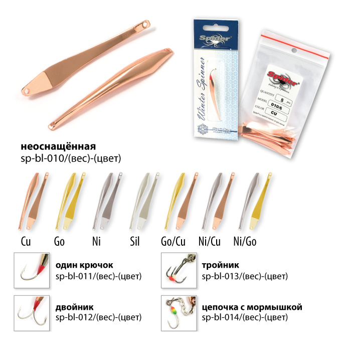 Коллекция зимних блёсен для вертикального блеснения от Spider, прошла многолетнюю селекцию и представляет все самое лучшее, что было создано из блесен для зимней рыбалки на данный момент. Все блёсна цельнометаллические, изготовленные методом холодной ковки из латуни. Благодаря новым технологиям производства удалось добиться максимально реалистичной и стабильной игры приманки, на рыболовном сленге это называется «блесна звенит». Проверенные временем классические модели, а так же уловистые новинки позволяют рыболову каждый раз добиваться успеха на рыбалке.
