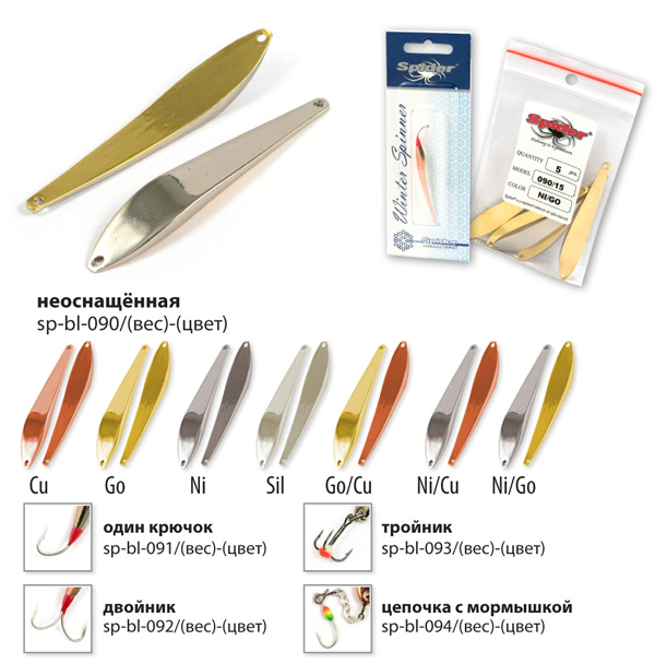 Коллекция зимних блёсен для вертикального блеснения от Spider, прошла многолетнюю селекцию и представляет все самое лучшее, что было создано из блесен для зимней рыбалки на данный момент. Все блёсна цельнометаллические, изготовленные методом холодной ковки из латуни. Благодаря новым технологиям производства удалось добиться максимально реалистичной и стабильной игры приманки, на рыболовном сленге это называется «блесна звенит». Проверенные временем классические модели, а так же уловистые новинки позволяют рыболову каждый раз добиваться успеха на рыбалке.