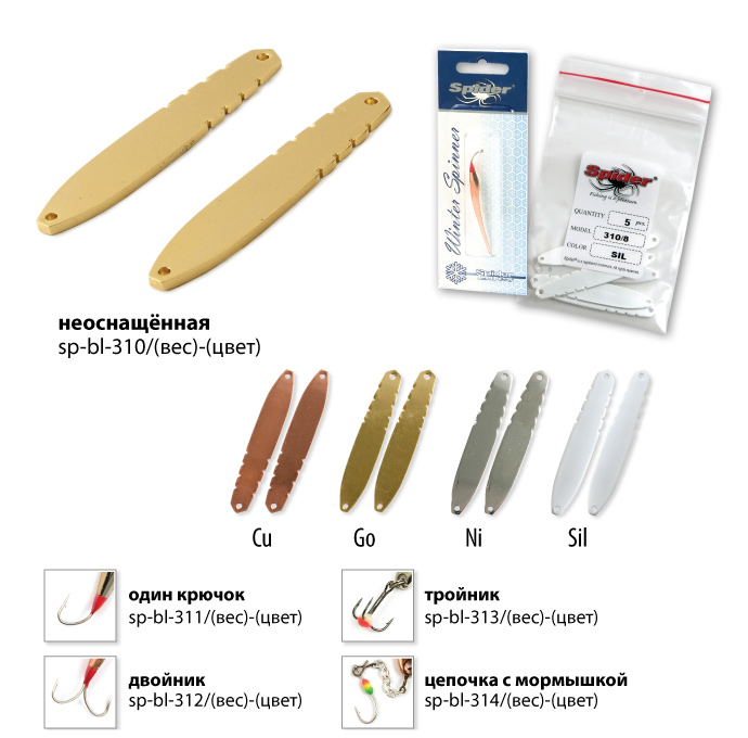 Коллекция зимних блёсен для вертикального блеснения от Spider, прошла многолетнюю селекцию и представляет все самое лучшее, что было создано из блесен для зимней рыбалки на данный момент. Все блёсна цельнометаллические, изготовленные методом холодной ковки из латуни. Благодаря новым технологиям производства удалось добиться максимально реалистичной и стабильной игры приманки, на рыболовном сленге это называется «блесна звенит». Проверенные временем классические модели, а так же уловистые новинки позволяют рыболову каждый раз добиваться успеха на рыбалке.