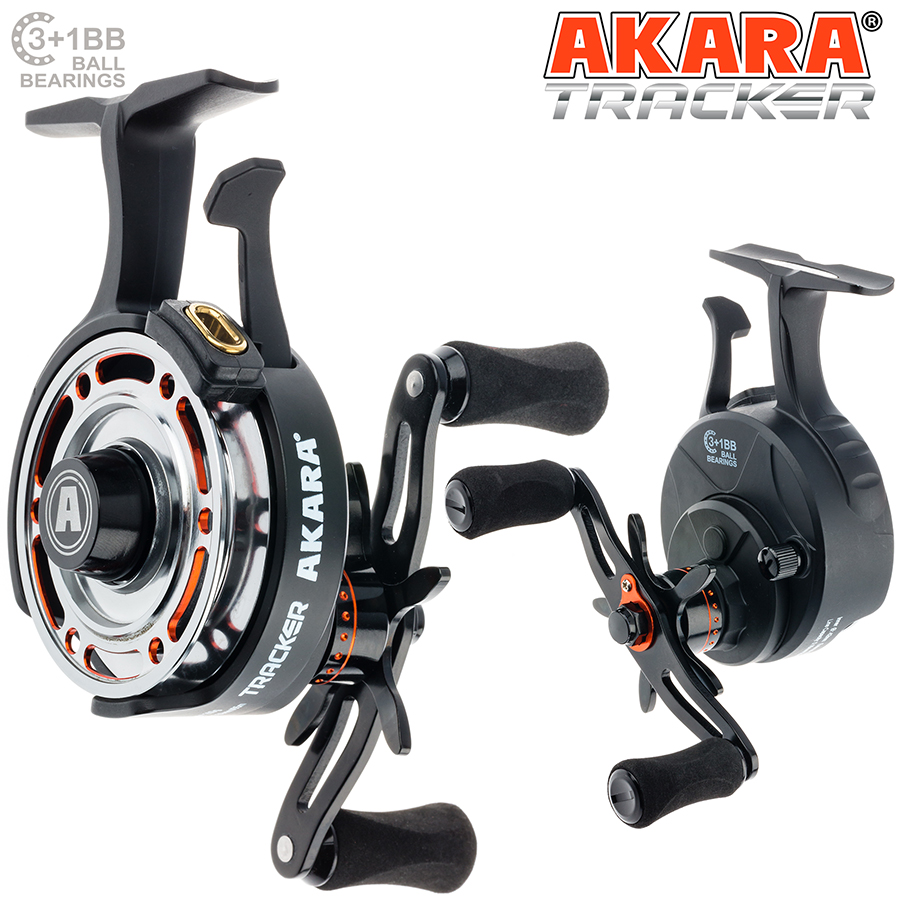 Катушка мультипликаторная зимняя Akara Tracker 3+1 bb с курком. Мультипликаторная катушка для оснащения зимних удочек для отвесной ловли. Катушка позволяют вываживать рыбу с глубины, используя только катушку, как при ловле на спиннинг – тащить рыбу руками за леску не обязательно. Шпули открытые, позволяют зрительно контролировать намотку лески на шпулю. Катушки не снабжены лесоукладывателем. Отличительной особенностью катушек является удлинённая ножка, которая даёт достаточную свободу для пальцев при удержании удочки в процессе вываживания. Облегченная алюминиевая шпуля. Облегченный корпус. Магнитный тормоз. Регулируемый механизм обратного хода. Дисковый фрикцион. Мгновенный тормоз.