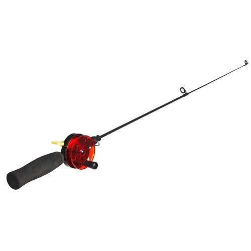 Удочка для зимнего блеснения с катушкой из морозостойкого пластика, оборудованной удобным клавишным тормозом. Телескопический хлыстик изготовлен из высокомодульного графита.