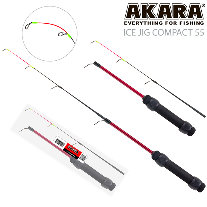 Akara Ice Jig Compact зимняя удочка для блеснения, выполненная в штекерном исполнении, под катушку. Рукоятка из неопрена, поэтому ее комфортно держать рукой на морозе. Бывает в двух длинах 55 см и 70 см. А так же в четырех тестах, от самых легких 3-7 г, до тяжелых 25-50г. Поэтому имея набор таких удилищ, вы сможете ловить всю рыбу, попадающуюся в наших водоемах. Летом эта удочка может использоваться как бортовая, причем ей не нужен кивок, так как верхняя часть колена очень чувствительна, впрочем, это касается и зимней рыбалки. Штекерная зимняя удочка Akara Ice Jig Compact. Тест 50г. Длина 55 см.