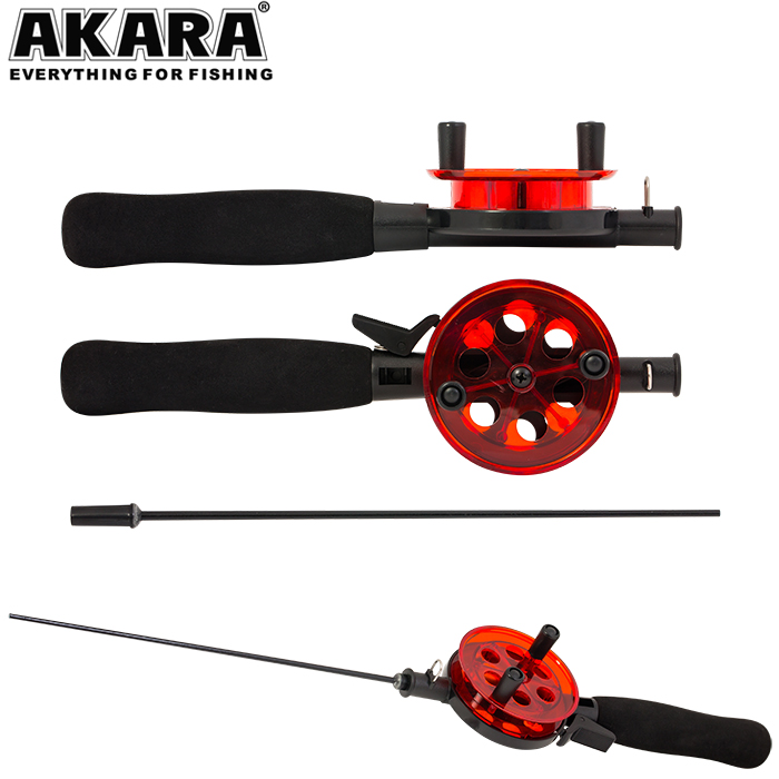 Удочка зимняя Akara 1808504 41 см 76 мм неопреновая ручка - универсальная удочка для ловли со льда. Стеклопластиковый хлыстик имеет разборное крепление для удобства в транспортировке удилки. Катушка оснащена клавишей фиксации для быстрого отпуска лески. Неопреновая рукоять анатомической формы обеспечивает уверенное удержание удочки в процессе ловли.