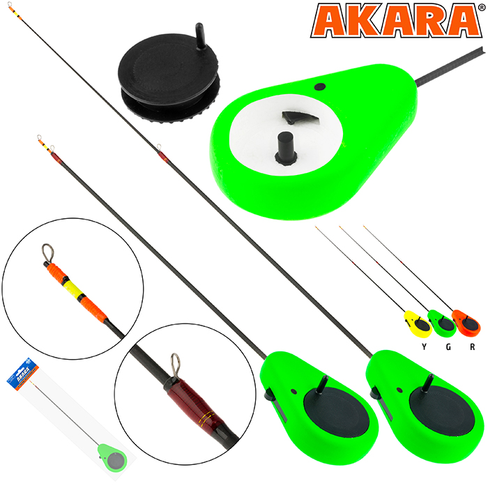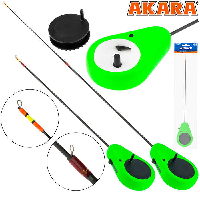 Akara Detent - зимняя удочка по типу балалайка, с боковым стопором. Предназначена для ловли на блесну. Оснащена телескопическим хлыстом из углепластика и пропускным кольцом. Общая длина 40 см. Длина хлыста 26,5 см. Вес 23г.