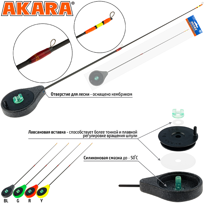 Akara Ice Pro - классическая зимняя удочка, по типу балалайка. Оснащена углепластиковым хлыстом и пропускным кольцом. Предназначена для ловли на блесну. Общая длина 35,5 см. Длина хлыста 28 см. Вес 19г.