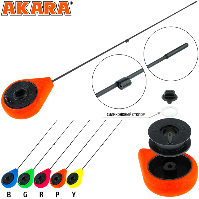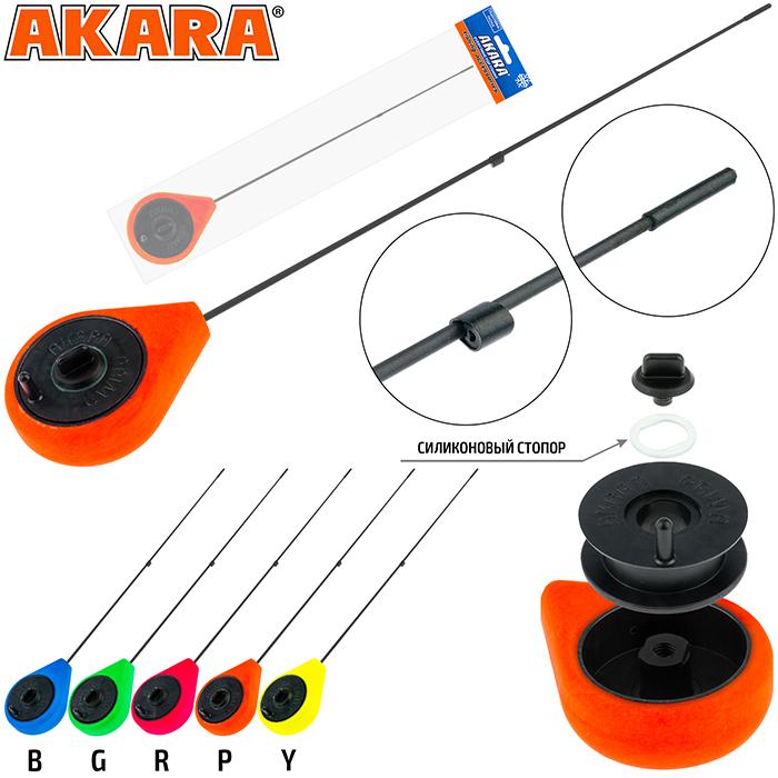 Akara Prima GL - компактная зимняя удочка для ловли на мормышку. Благодаря округлой форме очень удобно лежит в руке. Общая длина 25 см. Длина хлыста19 см. Вес 23,5г.