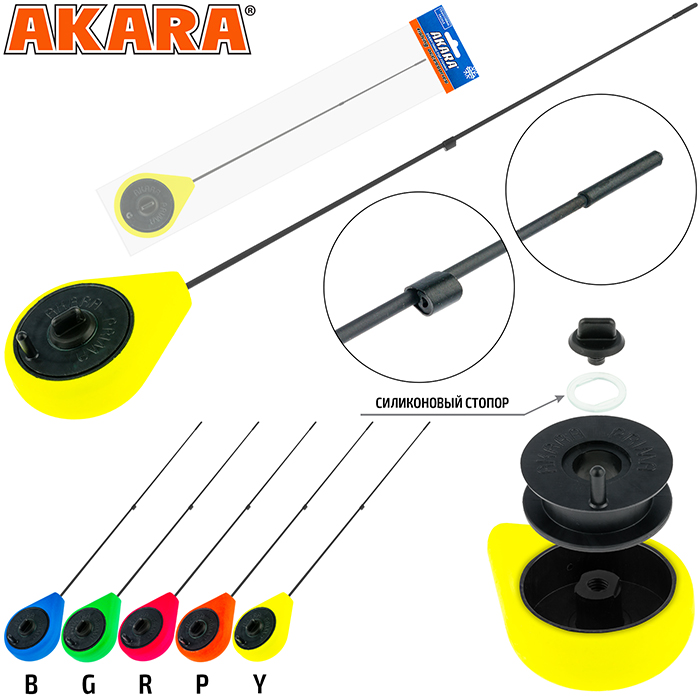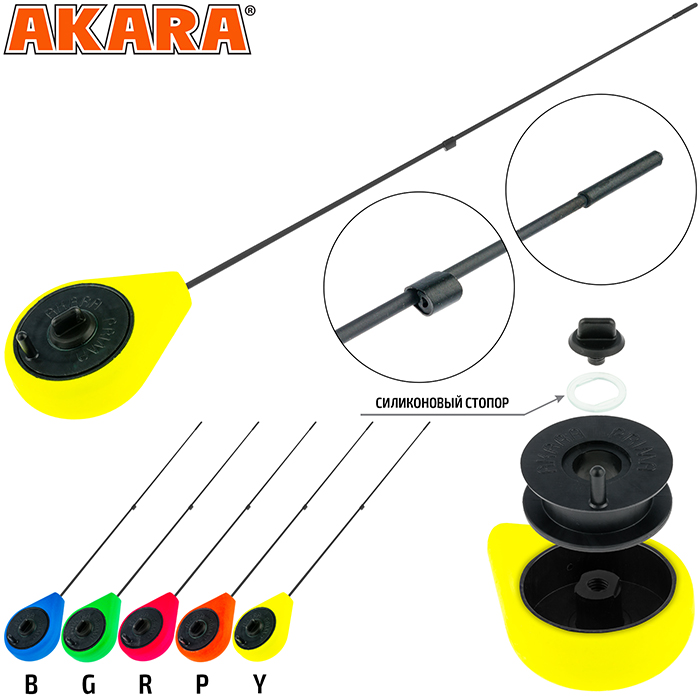 Akara Prima GL - компактная зимняя удочка для ловли на мормышку. Благодаря округлой форме очень удобно лежит в руке. Общая длина 25 см. Длина хлыста19 см. Вес 23,5г.