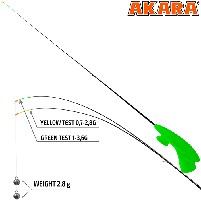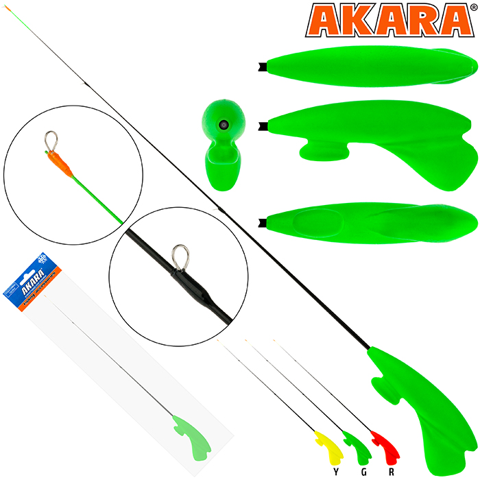 Akara RHS-G3R и RHS-Y3R пенопластовые зимние удочки предназначены для ловли без дополнительного кивка, т.к сам хлыстик служит кивком. Модель прекрасно подходит для безмотыльной рыбалки. Вес 7.5г.