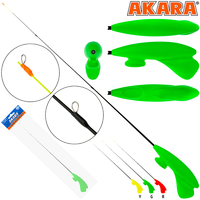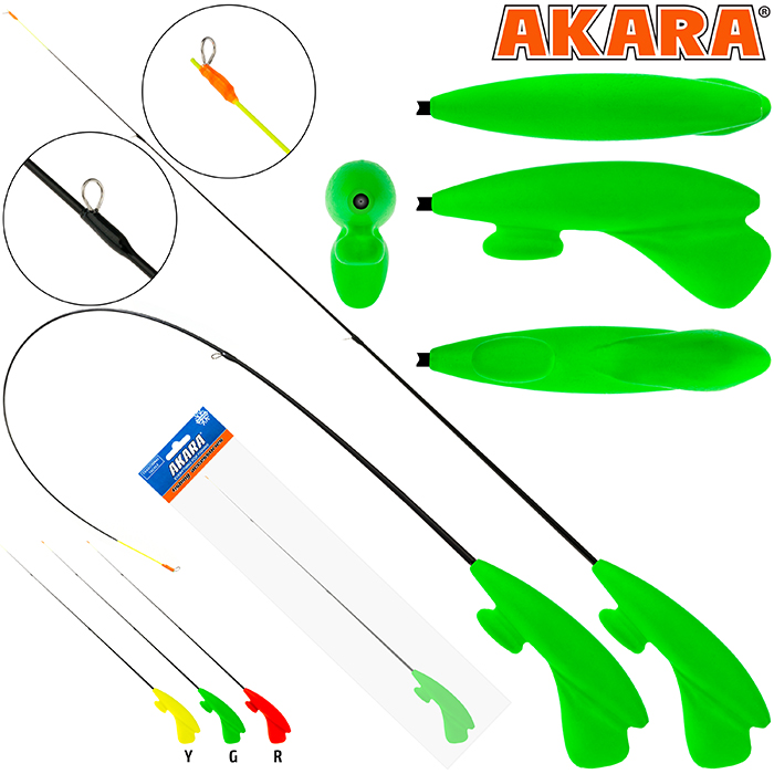 Akara RHS-G3R и RHS-Y3R пенопластовые зимние удочки предназначены для ловли без дополнительного кивка, т.к сам хлыстик служит кивком. Модель прекрасно подходит для безмотыльной рыбалки. Вес 7.5г.