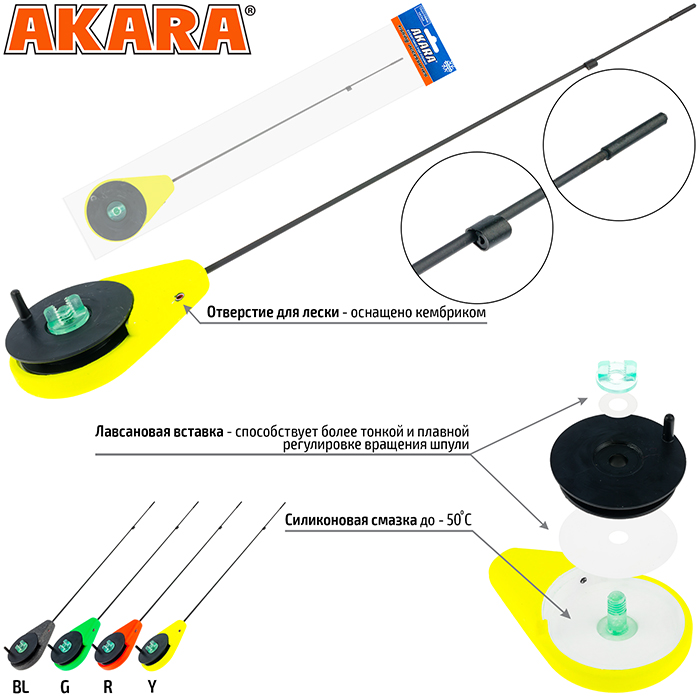Akara Sfera Gl - зимняя удочка для ловли на мормышку полуоткрытого типа, благодаря этому она несколько меньше обычной удочки. Модель оснащена стеклопластиковым хлыстиком, позволяющим без проблем ловить в любые погодные условия. Длина 27 см. Вес 12г.