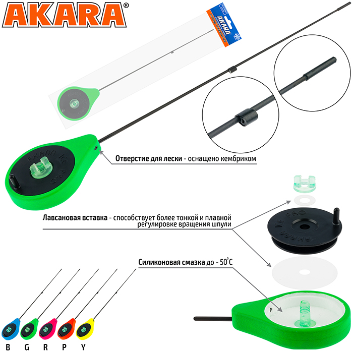 Удочка зимняя Akara Sport GL - современная зимняя удочка типа балалайка. Изготавливается из сверхпрочного морозостойкого пенопласта, окрашивается в яркие цвета для лучшей видимости на льду и снегу. Отверстие для лески в корпусе удочки оснащено кембриком. Лавсановая вставка под шпулей катушки предназначена для более плавной и точной регулировки вращения катушки. Хлыстик стеклопластиковый. Общая длина 25,5 см. Длина хлыста 19,5 см. Вес 15г.