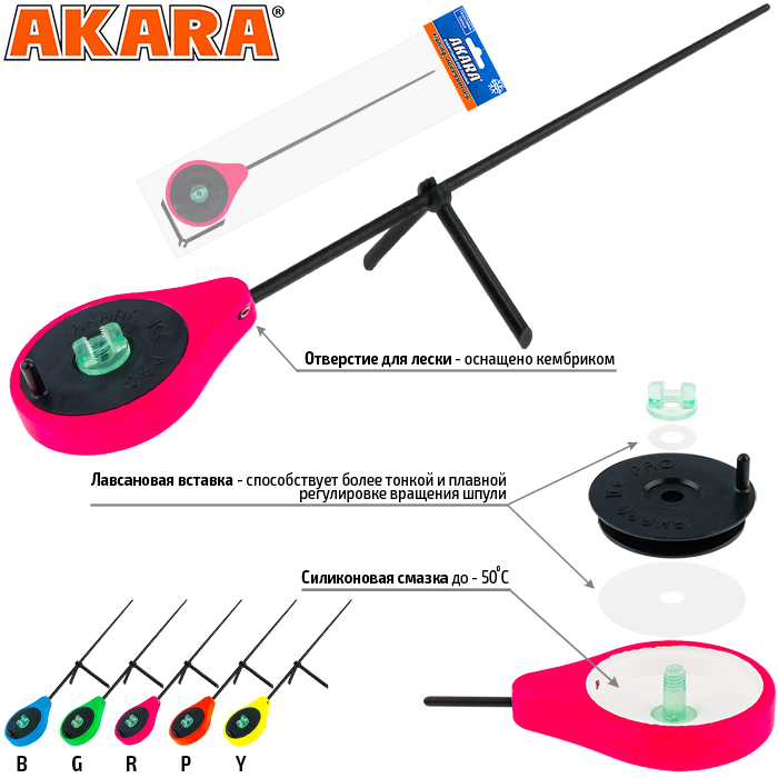 Удочка зимняя Akara Sport PK - современная зимняя удочка типа балалайка. Изготавливается из сверхпрочного морозостойкого пенопласта, окрашивается в яркие цвета для лучшей видимости на льду и снегу. Отверстие для лески в корпусе удочки оснащено кембриком. Лавсановая вставка под шпулей катушки предназначена для более плавной и точной регулировки вращения катушки. Хлыстик стеклопластиковый. Общая длина 24 см. Длина хлыста 17,5 см.Вес 16,5г.