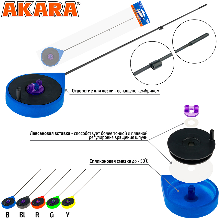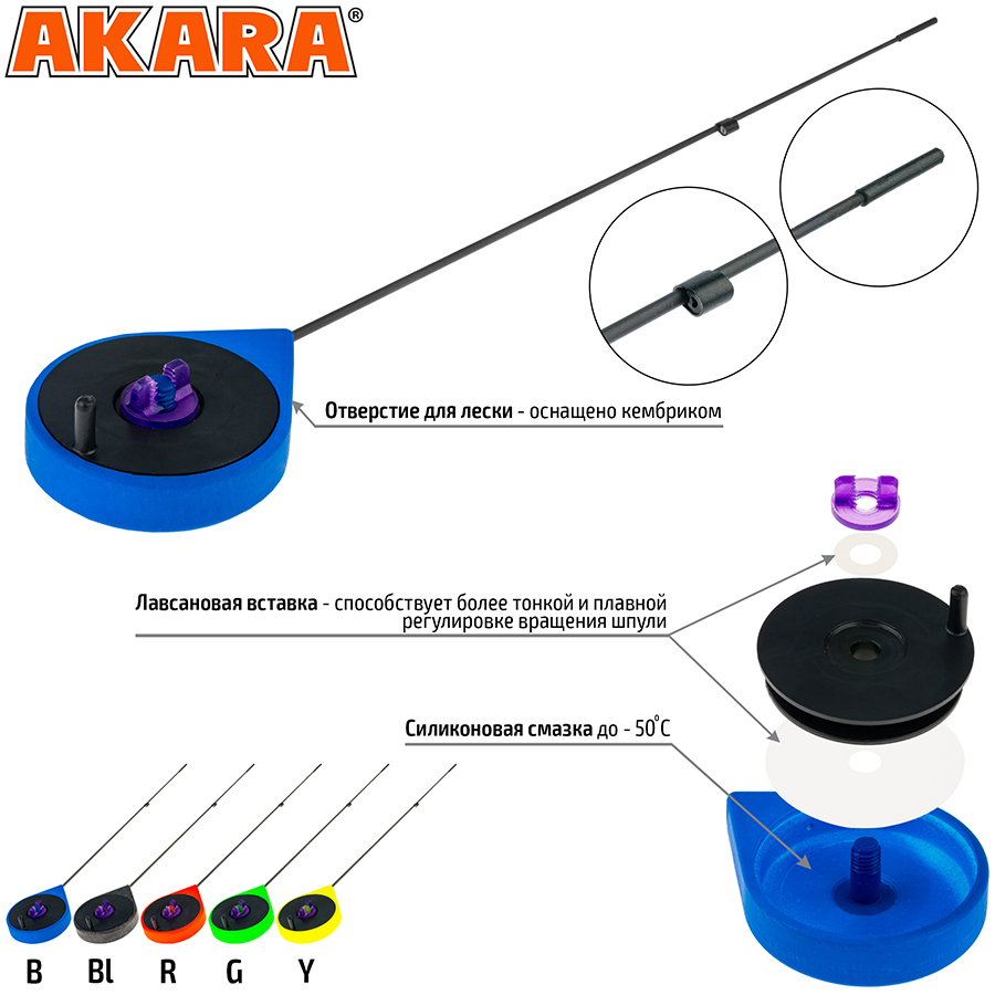 В модельном ряду удочек для зимней рыбалки Akara, пополнение. Представляем новинку, зимнюю удочку Akara Ultra Sport. Удочка разработанная для спортивной рыбалки на мормышку, выгодно отличается компактными размерами и весом. Для удобства использования, под барашком и шпулей предусмотрены специальные шайбы, облегчающие скольжение. Карбоновый хлыст обеспечит надежную подсечку, пенопластовый корпус не холодит руки. Благодаря ярким цветам, удочка хорошо заметна на снегу. Мы уверены, что зимняя удочка Akara Ultra Sport будет кстати и на соревнованиях, и на любительской рыбалке. Общая длина 26 см. Длина хлыста 20 см. Вес 12,4 г.