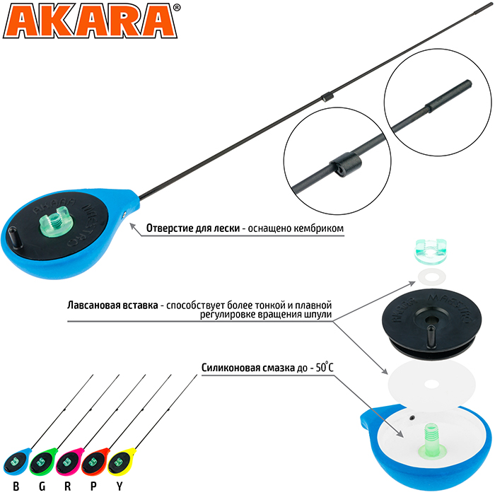 Удочка зимняя Akara Universal GL - современная зимняя удочка типа балалайка. Изготавливается из сверхпрочного морозостойкого пенопласта, окрашивается в яркие цвета для лучшей видимости на льду и снегу. Отверстие для лески в корпусе удочки оснащено кембриком. Лавсановая вставка под шпулей катушки предназначена для более плавной и точной регулировки вращения катушки. Хлыстик стеклопластиковый. Общая длина 25,5 см. Длина хлыста 19,5 см. Вес 16,5г.