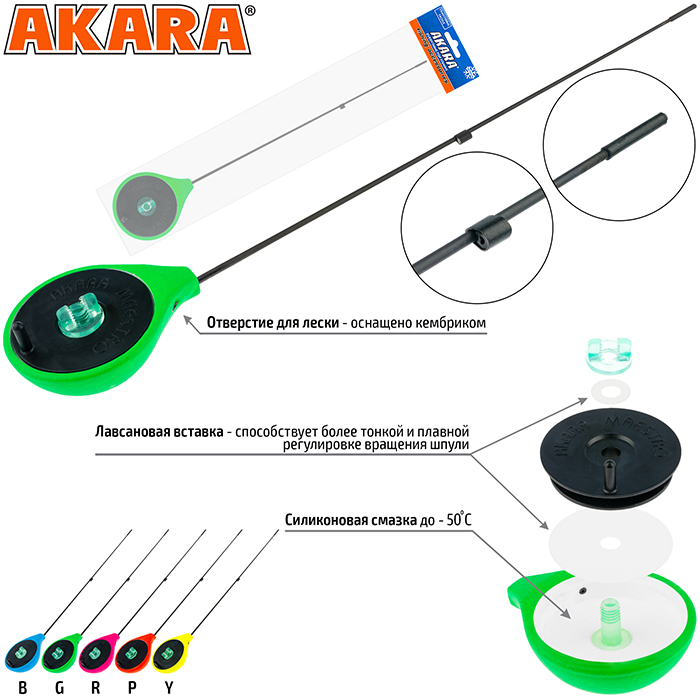 Удочка зимняя Akara Universal GL - современная зимняя удочка типа балалайка. Изготавливается из сверхпрочного морозостойкого пенопласта, окрашивается в яркие цвета для лучшей видимости на льду и снегу. Отверстие для лески в корпусе удочки оснащено кембриком. Лавсановая вставка под шпулей катушки предназначена для более плавной и точной регулировки вращения катушки. Хлыстик стеклопластиковый. Общая длина 25,5 см. Длина хлыста 19,5 см. Вес 16,5г.
