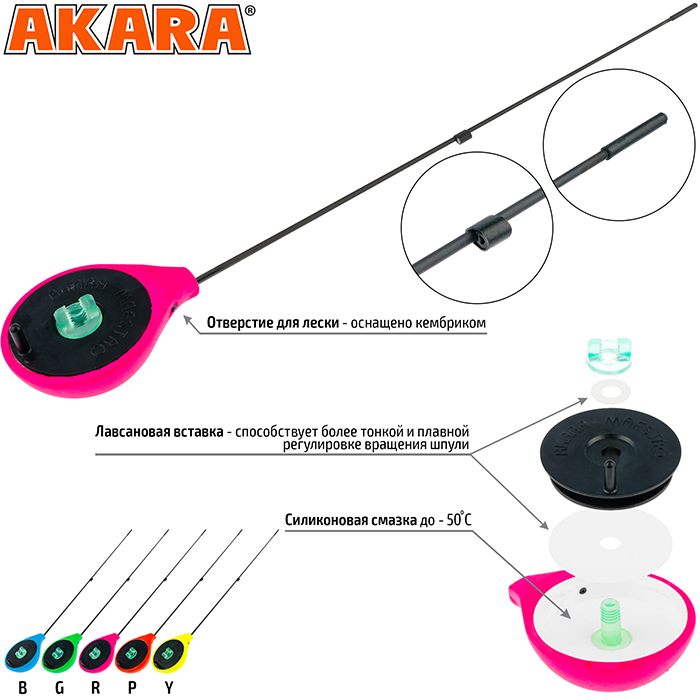 Удочка зимняя Akara Universal GL - современная зимняя удочка типа балалайка. Изготавливается из сверхпрочного морозостойкого пенопласта, окрашивается в яркие цвета для лучшей видимости на льду и снегу. Отверстие для лески в корпусе удочки оснащено кембриком. Лавсановая вставка под шпулей катушки предназначена для более плавной и точной регулировки вращения катушки. Хлыстик стеклопластиковый. Общая длина 25,5 см. Длина хлыста 19,5 см. Вес 16,5г.