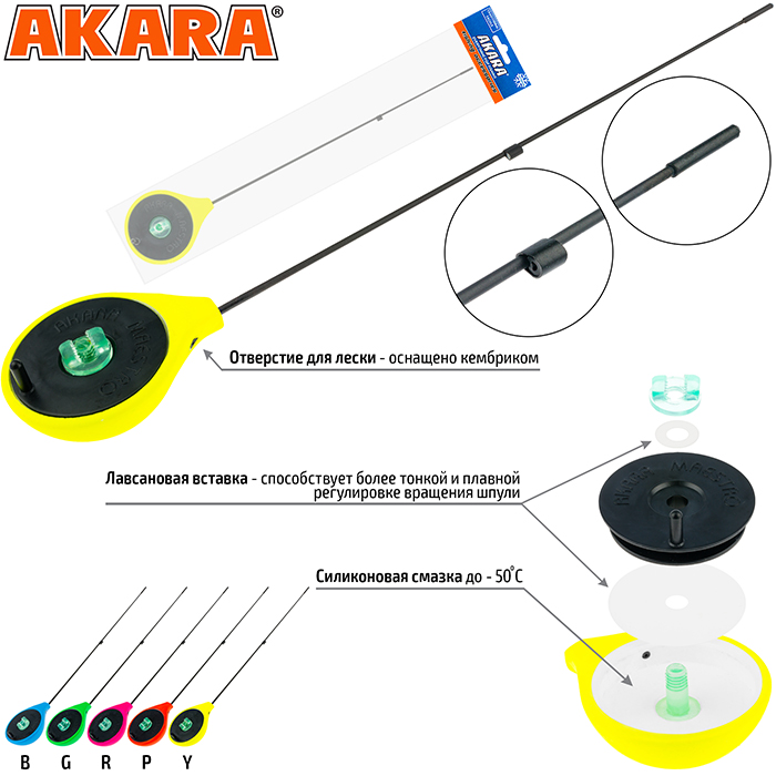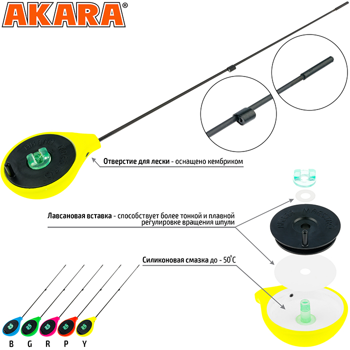 Удочка зимняя Akara Universal GL - современная зимняя удочка типа балалайка. Изготавливается из сверхпрочного морозостойкого пенопласта, окрашивается в яркие цвета для лучшей видимости на льду и снегу. Отверстие для лески в корпусе удочки оснащено кембриком. Лавсановая вставка под шпулей катушки предназначена для более плавной и точной регулировки вращения катушки. Хлыстик стеклопластиковый. Общая длина 25,5 см. Длина хлыста 19,5 см. Вес 16,5г.