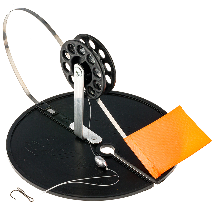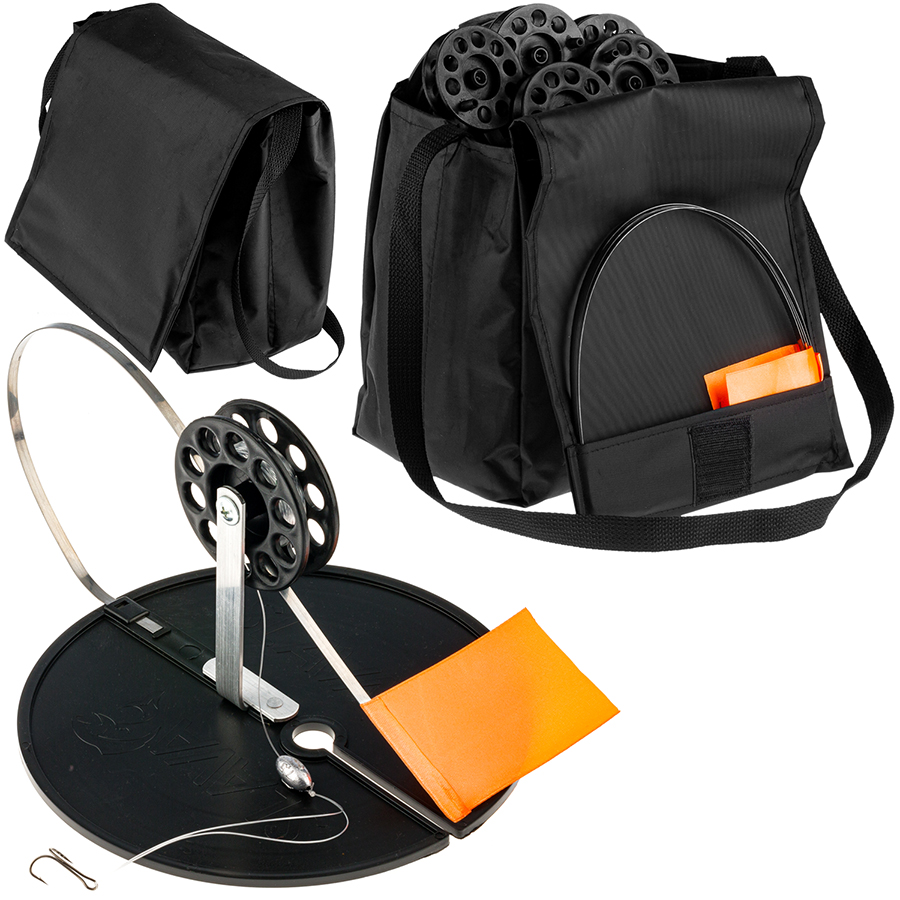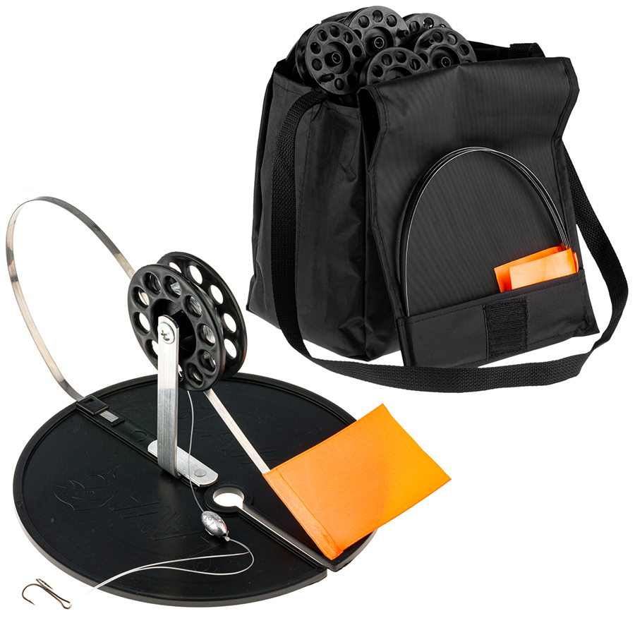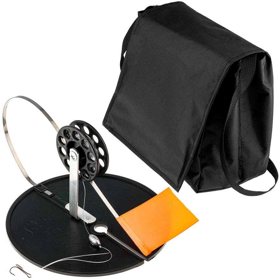 Жерлица диаметр 18 см на алюминиевой стойке кат. 6,5 см оснащенная Судак (5шт.) в сумке