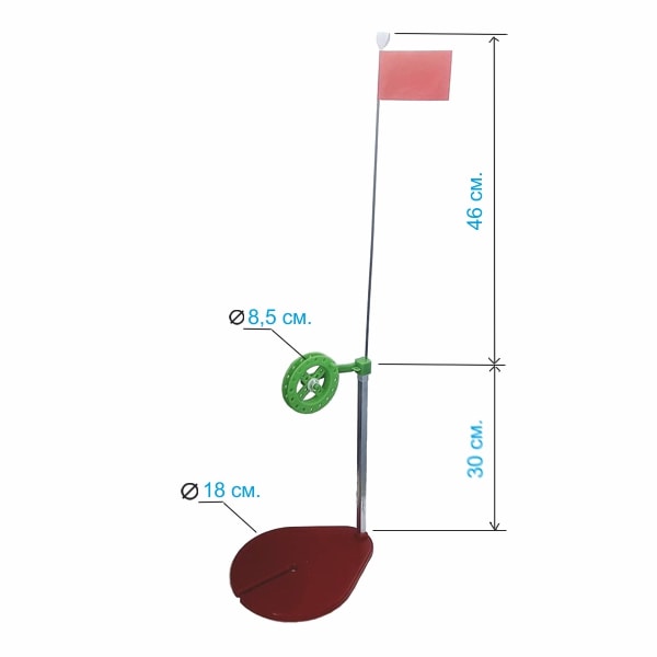 Жерлица зимняя Akara 36005-1 неоснащенная на подставке. Подставка и катушка изготовлены из морозостойкого ударопрочного пластика, штырь изготовлен из дюрали, основа флажка из пружинной стали, кончик флажка из светоотражающего материала для улучшения видимости в ночное время. Жерлица с диаметром основания 18 см. Диаметр катушки 8,5 см. Общая высота до флажка 76 см.